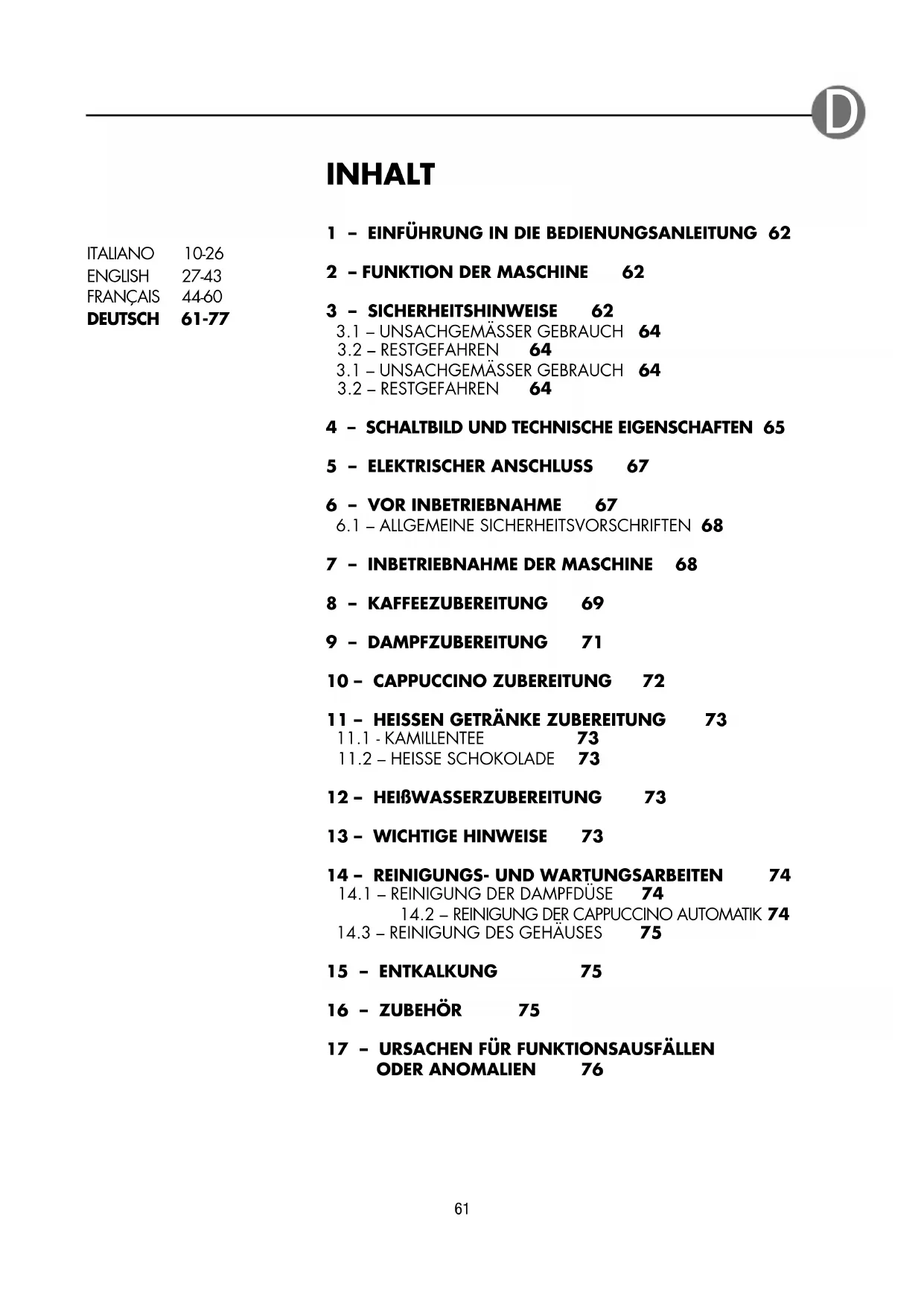 14.2 - REINIGUNG DER CAPPUCCINO AUTOMATIK 74
