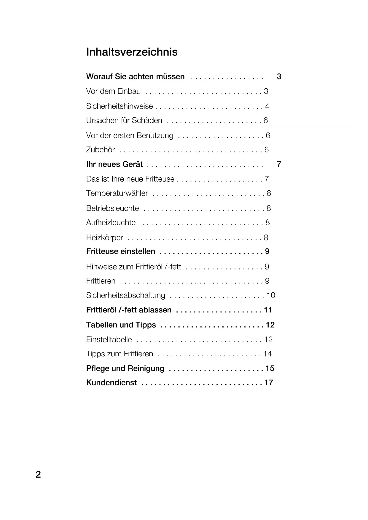 Hinweise zum Frittieröl /-fett . . . . . . . . . . . . . . . . . . 9