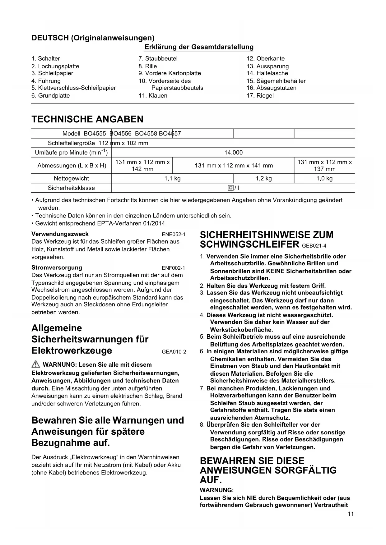 SICHERHEITSHINWEISE ZUM SCHWINGSCHLEIFER GEB021-4