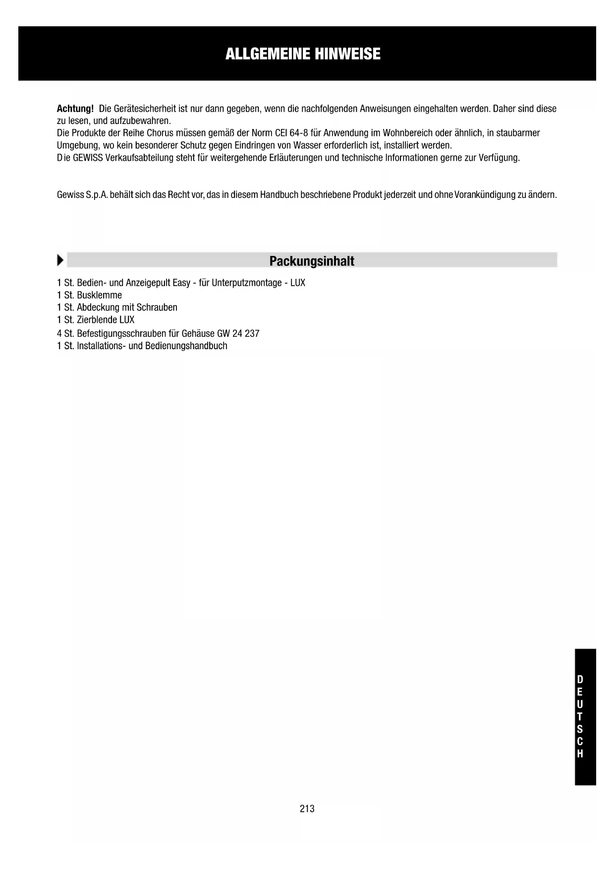 Finden Sie kostenlos die Bedienungsanleitung des Geräts GW12771VT Gewiss als PDF.