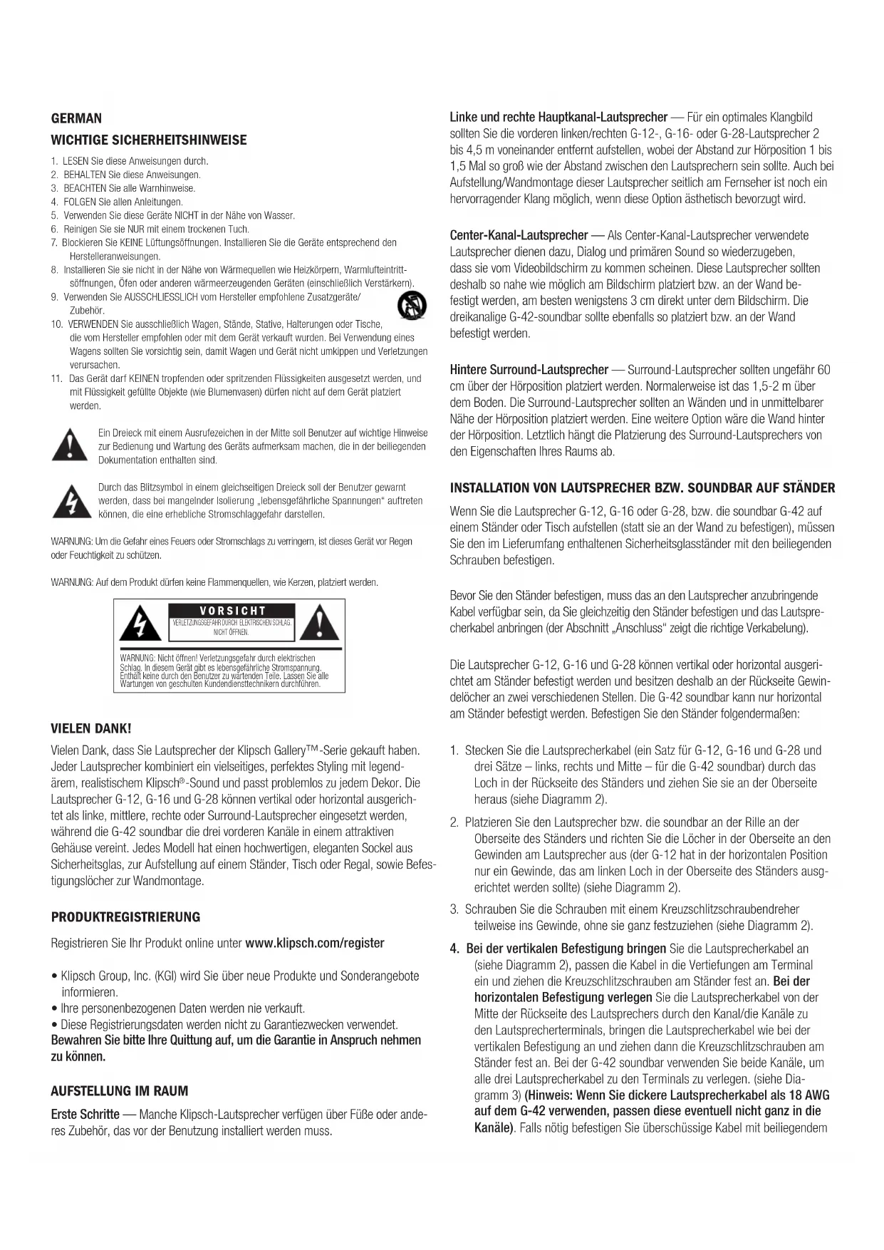 Vielen Dank, dass Sie Lautsprecher der Klipsch Gallery™-Serie gekauft haben.