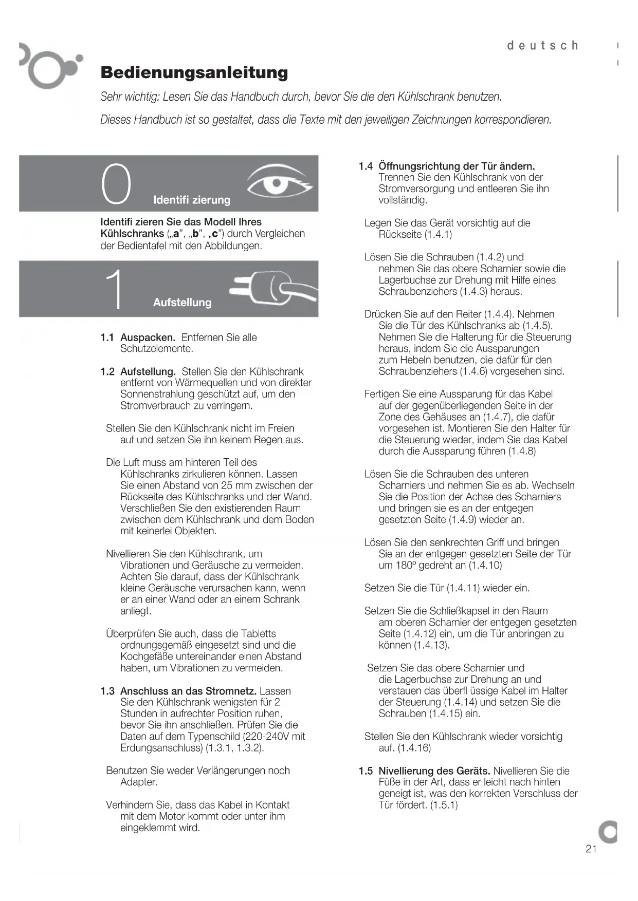1.4 Öffnungsrichtung der Tür ändern.