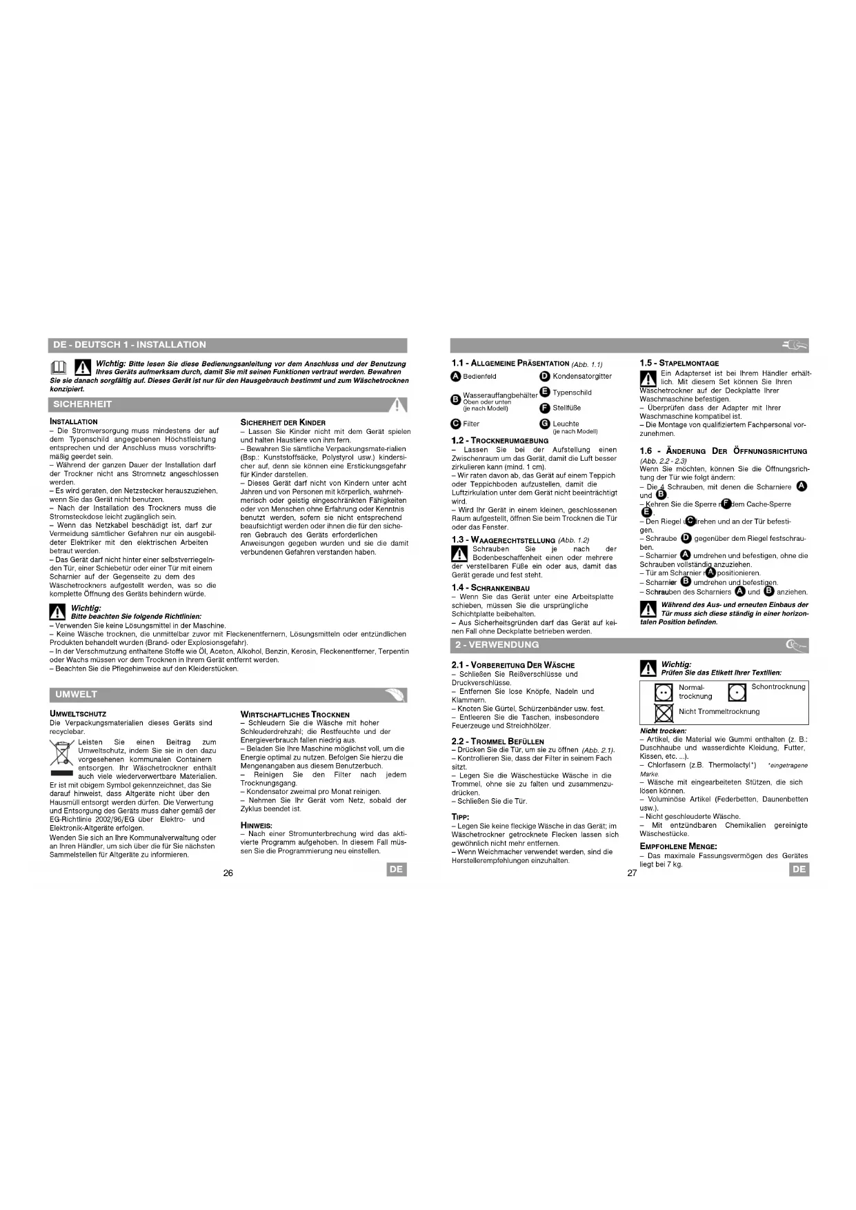 entsorgen. Ihr Wäschetrockner enthält