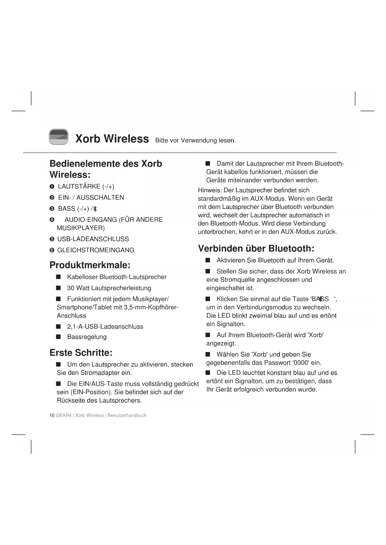 Xorb Wireless - Lautsprecher GEAR4 - Kostenlose Bedienungsanleitung