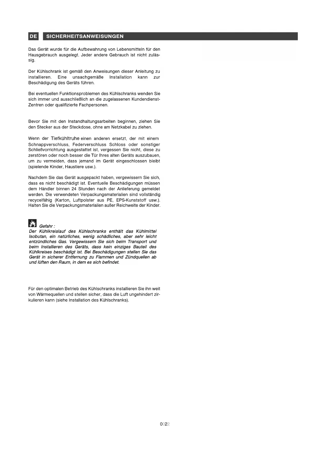 die Ozonschicht schädlichen Kühlgase. Der Kühlschrank darf nicht