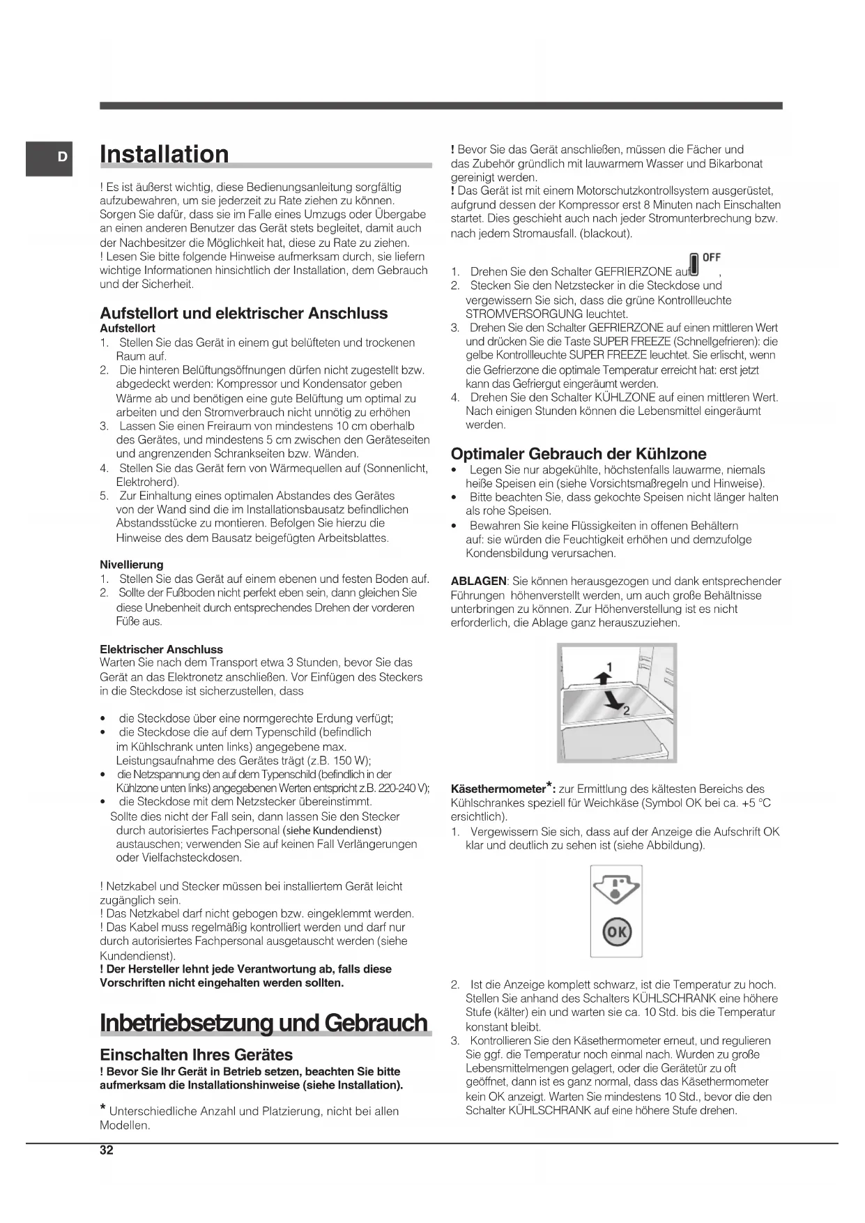 Installation !Esistäußerstwichtig,dieseBedienungsanleitungsorgfältig aufzubewahren,umsiejederzeitzuRateziehenzukönnen. SorgenSiedafür,dasssieimFalleeinesUmzugsoderÜbergabe aneinenanderenBenutzerdasGerätstetsbegleitet,damitauch derNachbesitzerdieMöglichkeithat,diesezuRatezuziehen. !LesenSiebittefolgendeHinweiseaufmerksamdurch,sieliefern wichtigeInformationenhinsichtlichderInstallation,demGebrauch undderSicherheit. Aufstellort und elektrischer Anschluss Aufstellort