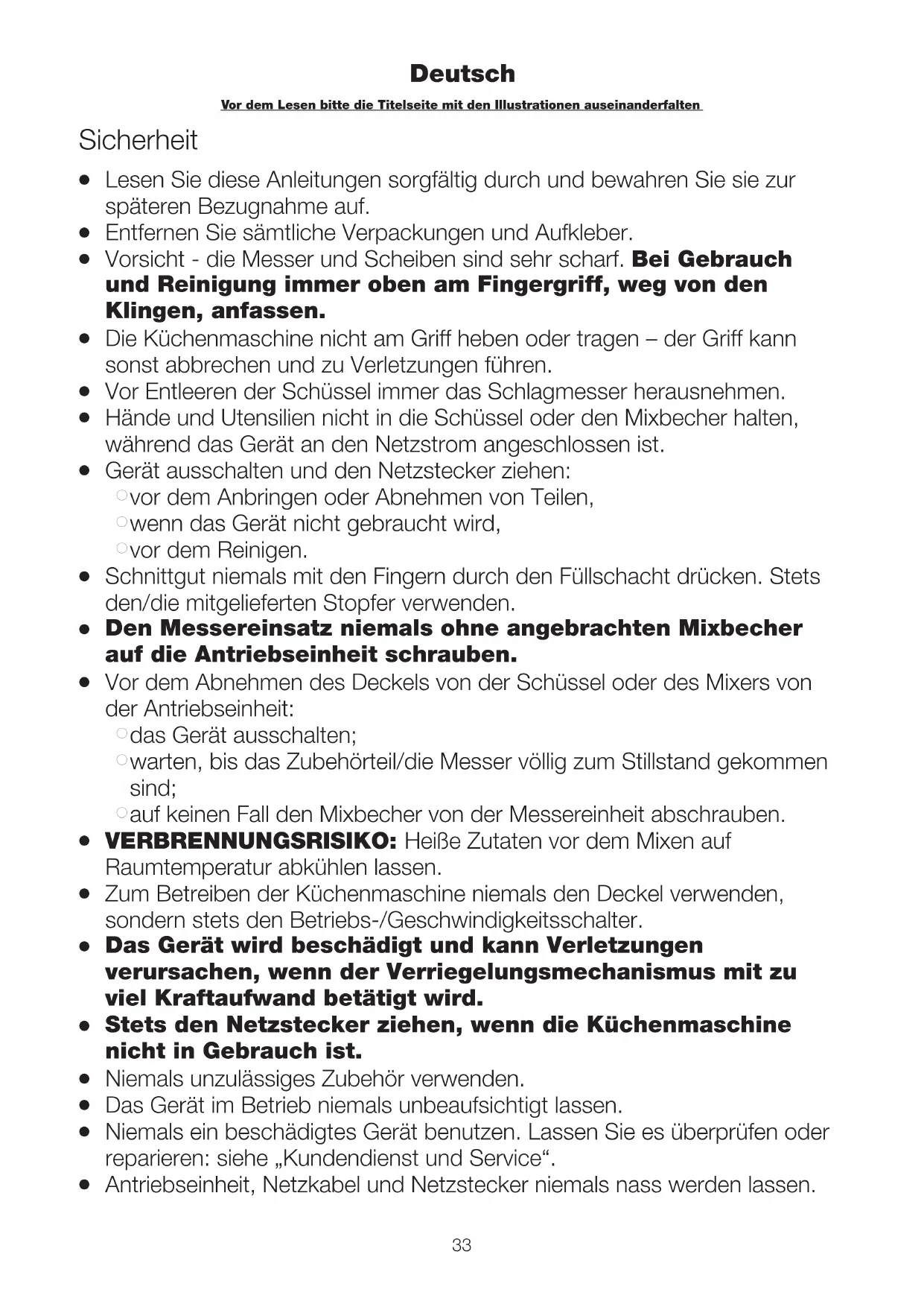 G Vorsicht - die Messer und Scheiben sind sehr scharf. Bei Gebrauch