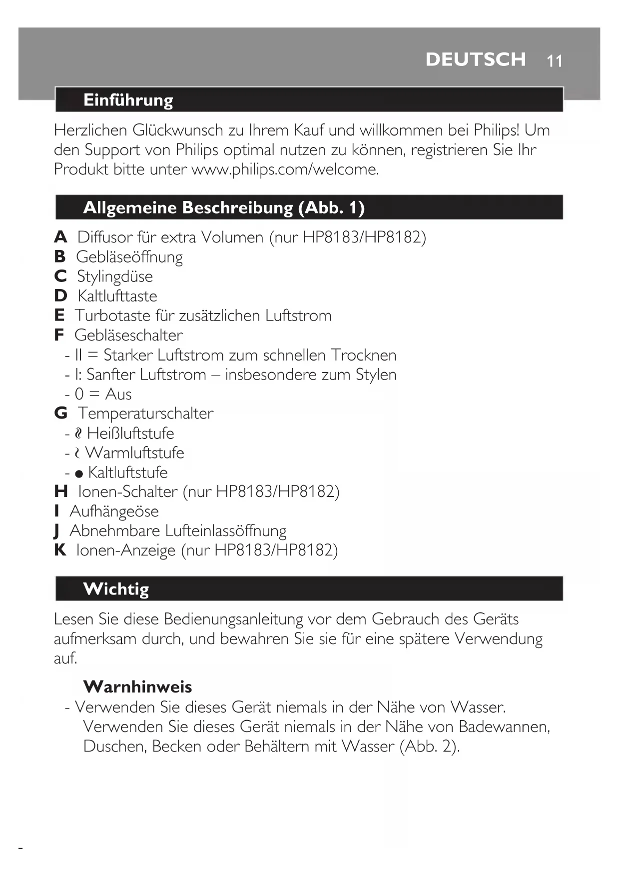 DEUTSCH12- Nur HP8183/HP8182/HP8181: Beim Gebrauch des Geräts mit