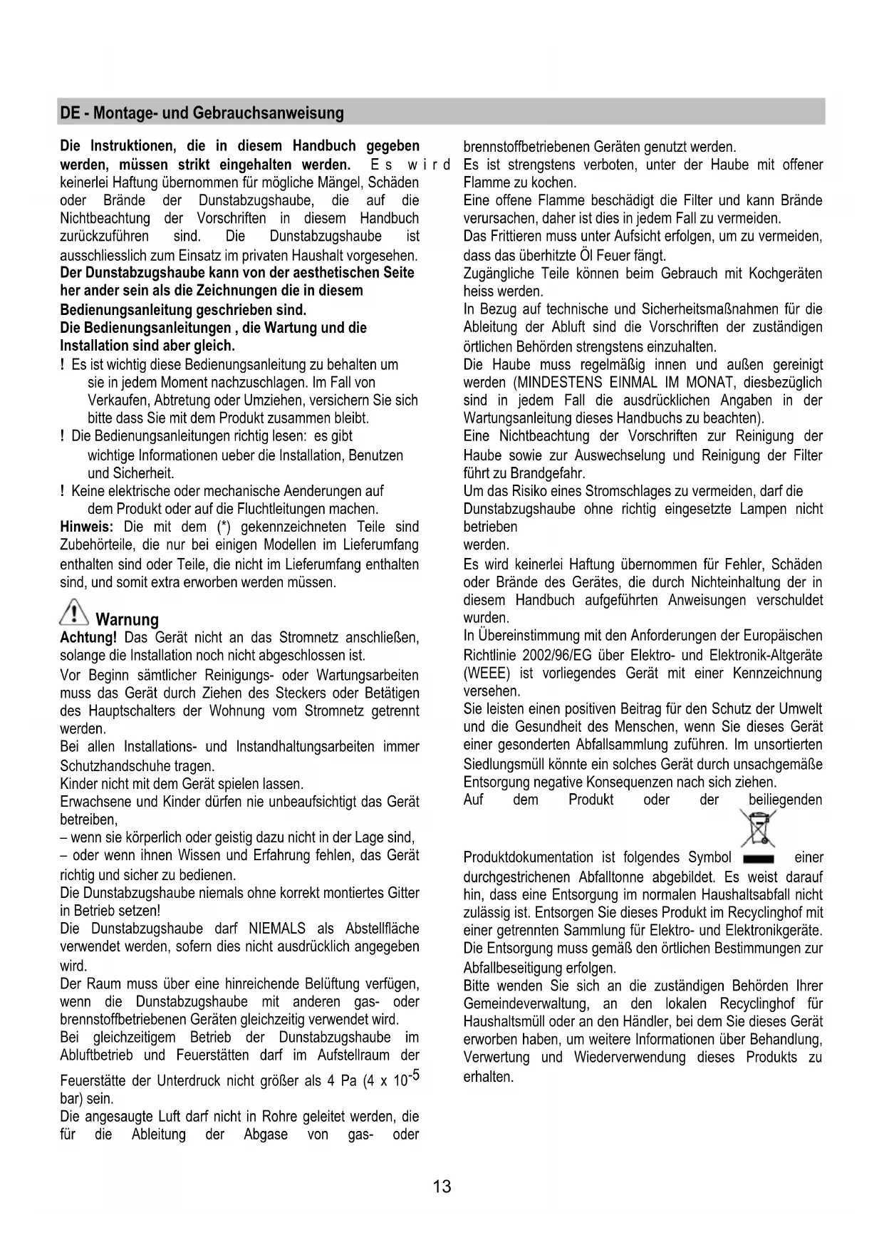 zurückzuführen sind. Die Dunstabzugshaube ist