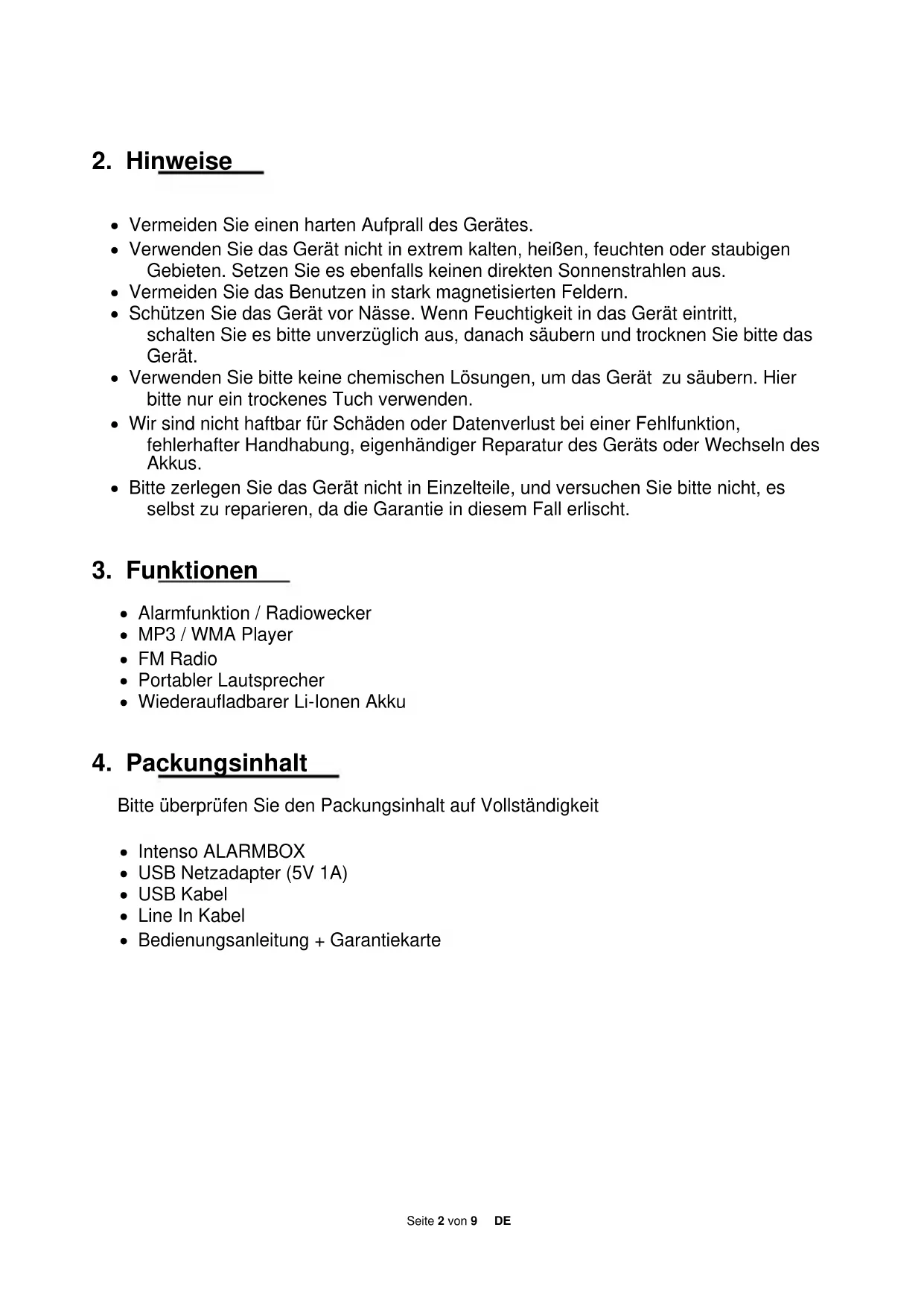 Bedienungsanleitung Seite 1-9 DE