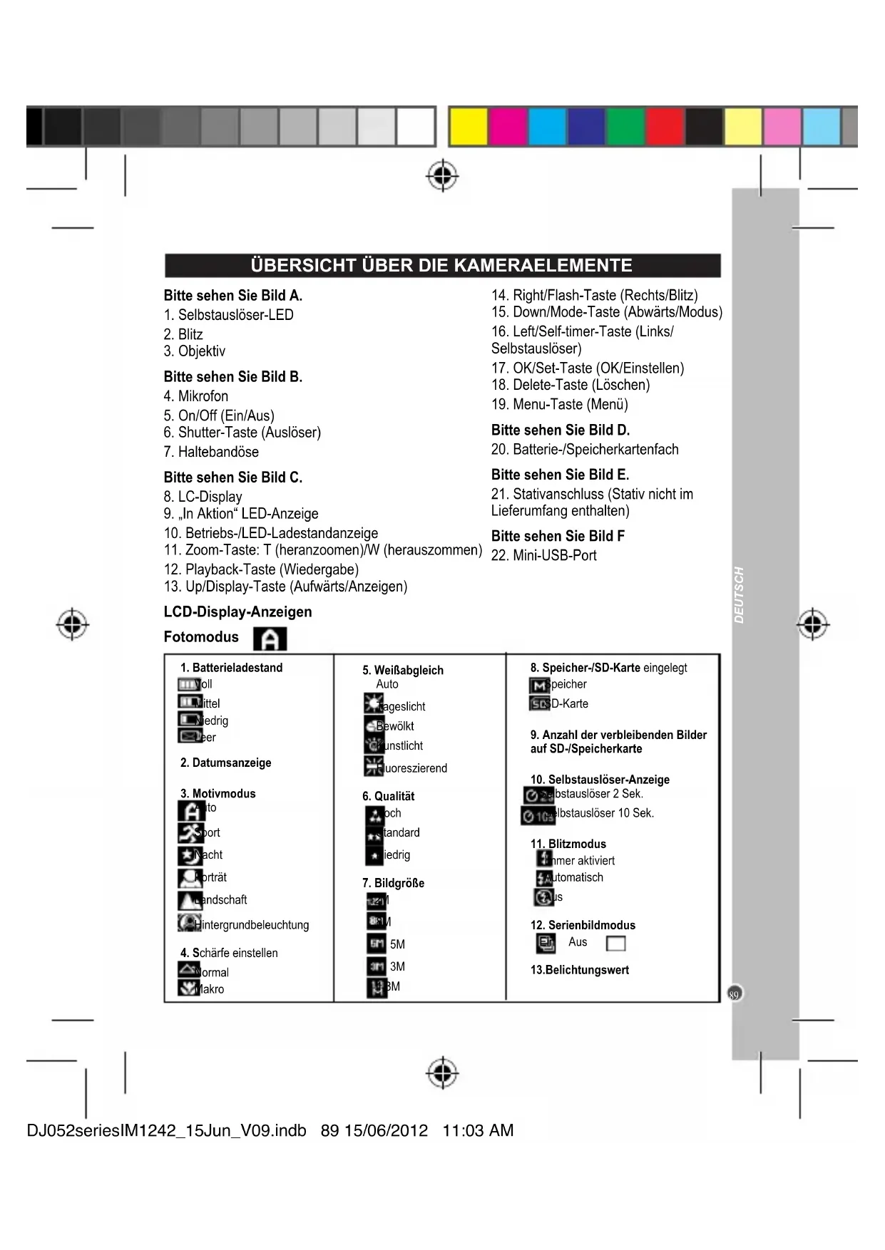 ÜBERSICHT ÜBER DIE KAMERAELEMENTE Bitte sehen Sie Bild A.