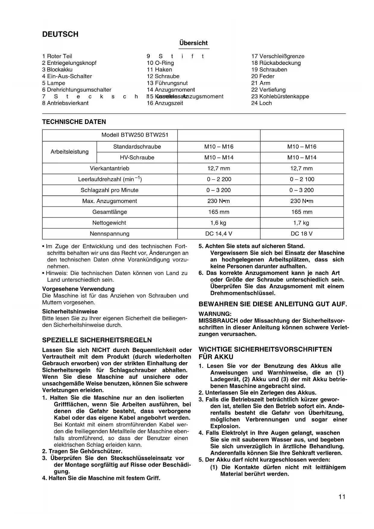 BEDIENUNGSANLEITUNG BTW250 MAKITA
