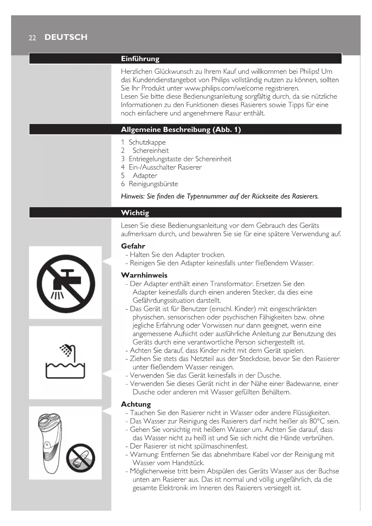 DEUTSCH- Verwenden Sie den Rasierer oder den Adapter nicht, wenn