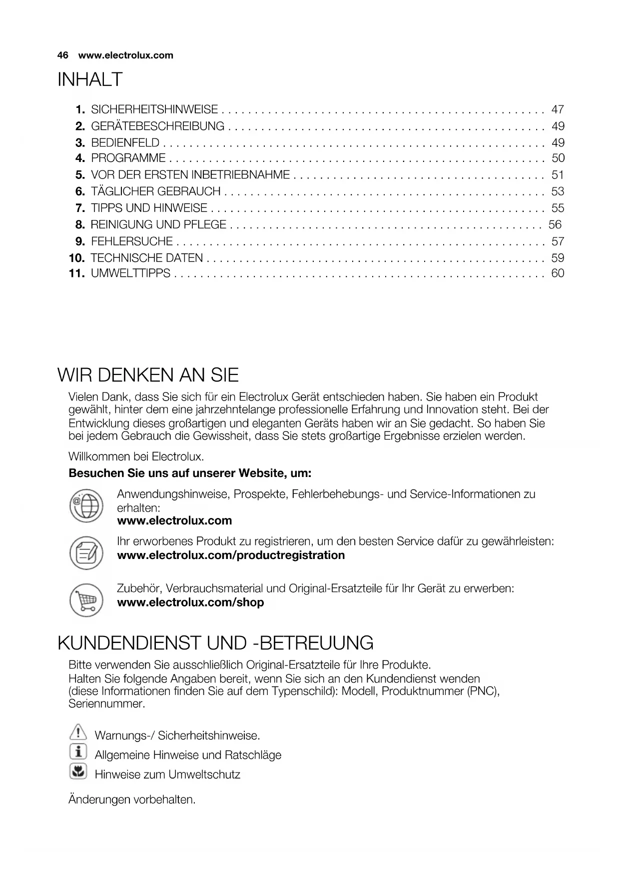 WIR DENKEN AN SIE Vielen Dank, dass Sie sich für ein Electrolux Gerät entschieden haben. Sie haben ein Produkt