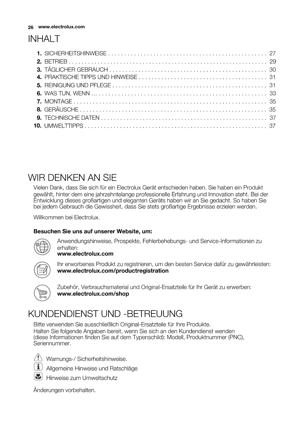 WIR DENKEN AN SIE Vielen Dank, dass Sie sich für ein Electrolux Gerät entschieden haben. Sie haben ein Produkt
