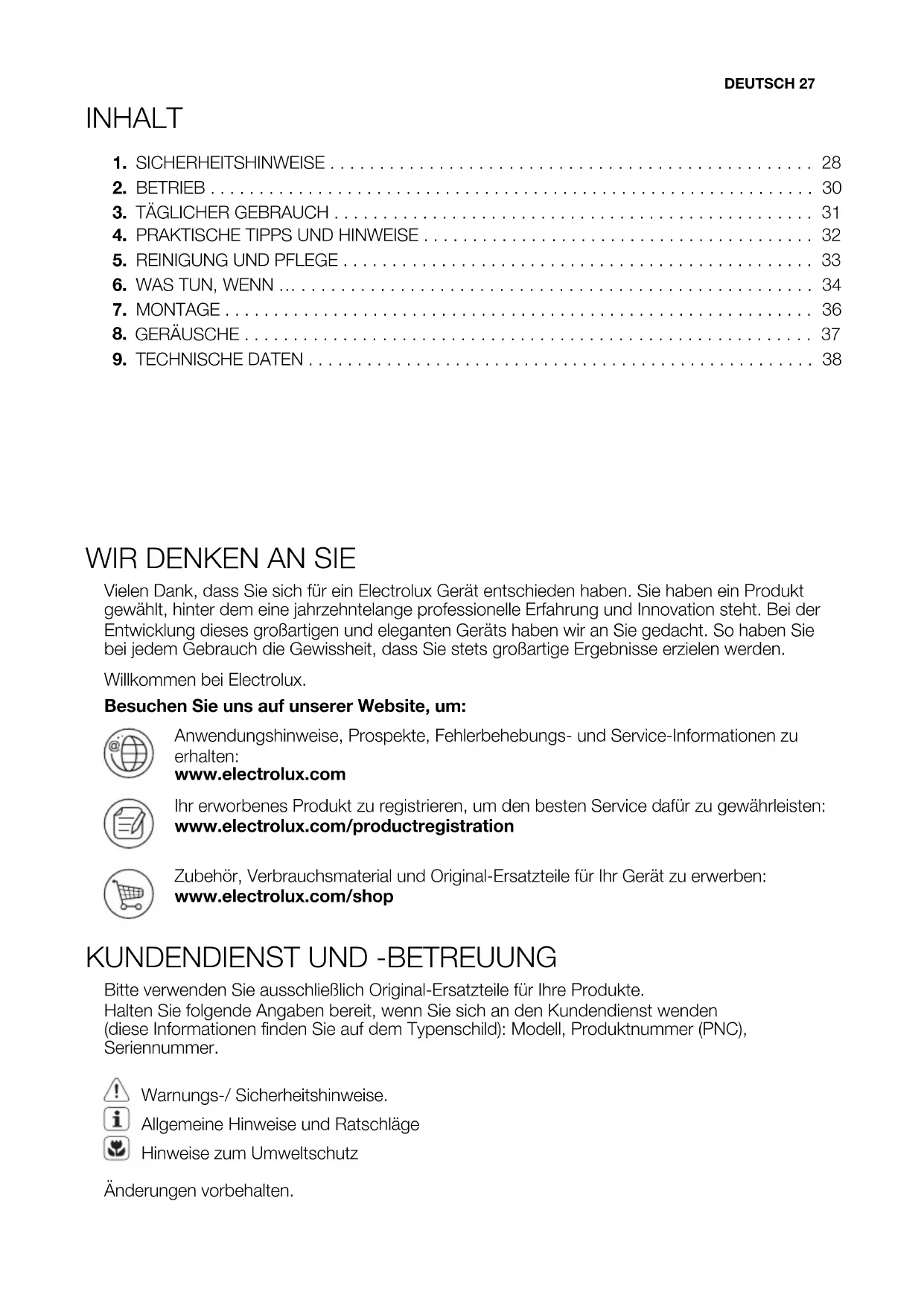 WIR DENKEN AN SIE Vielen Dank, dass Sie sich für ein Electrolux Gerät entschieden haben. Sie haben ein Produkt