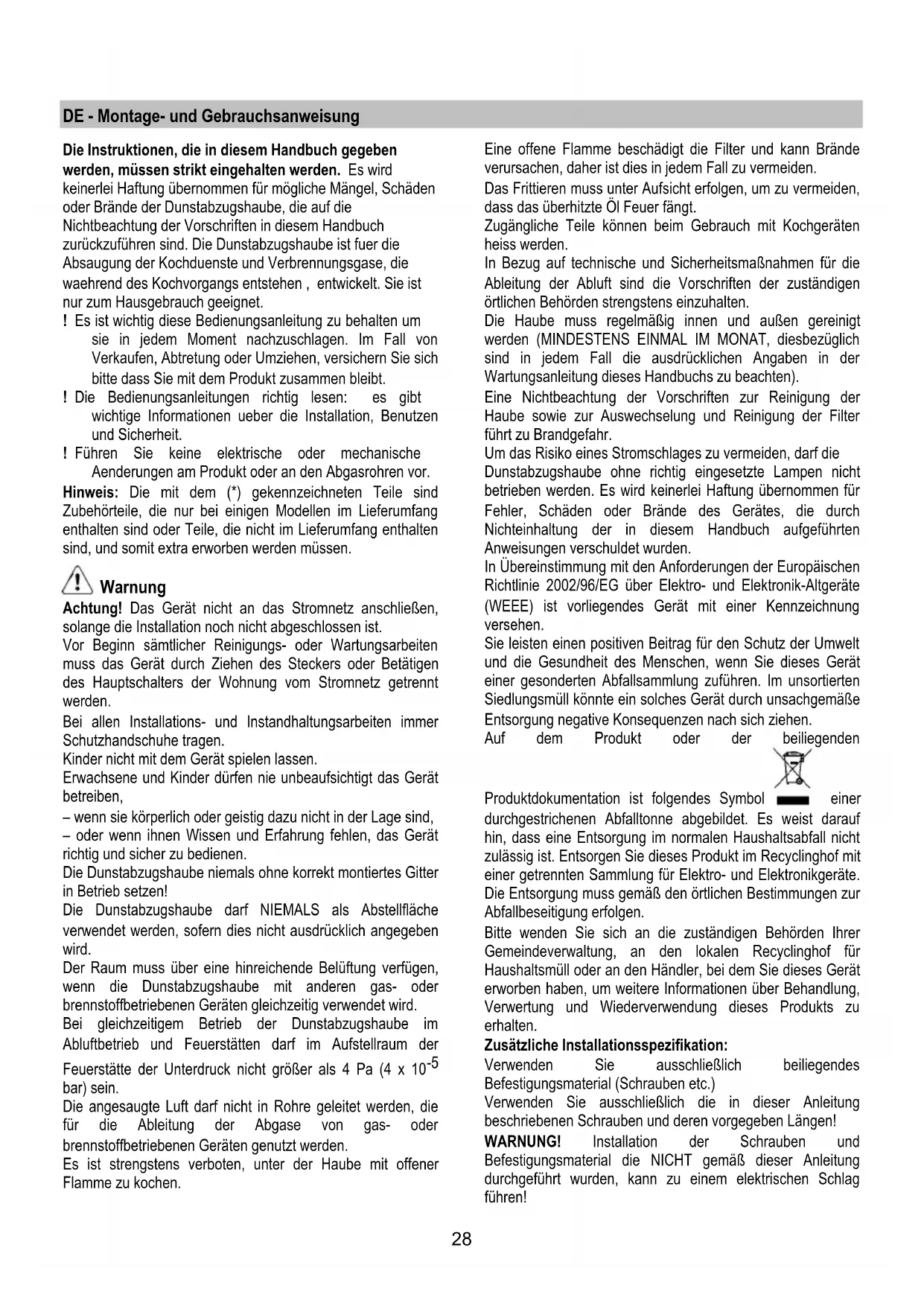 zurückzuführen sind. Die Dunstabzugshaube ist fuer die