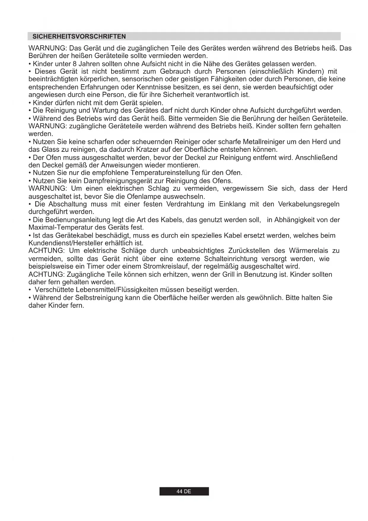 43 CZWARNUNG: Das Gerät und die zugänglichen Teile des Gerätes werden während des Betriebs heiß. Das
