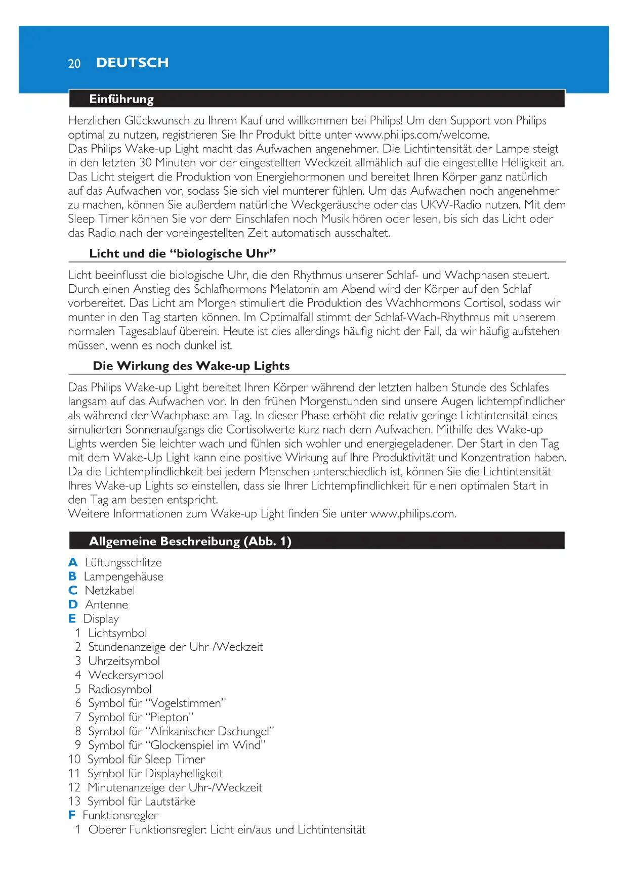 BEDIENUNGSANLEITUNG Wakeup Light HF3476 PHILIPS