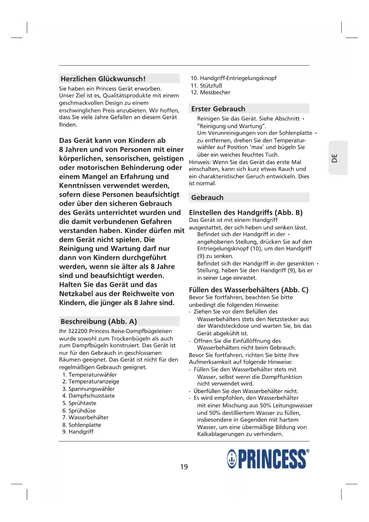 BEDIENUNGSANLEITUNG 322200 PRINCESS