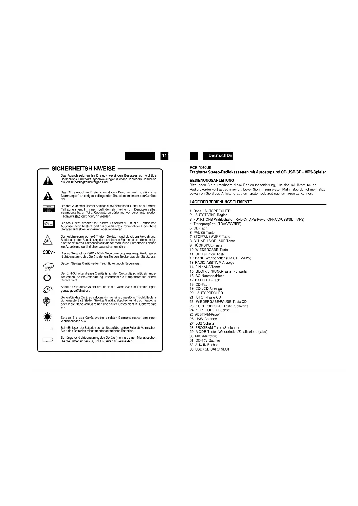 Bitte lessen Sie aufmerksam diese Bedienungsanleitung, um sich mit Ihr neuen Radiokorder vertraut zu machen, bevor Sie hin zum ersten Mal in Betriebnehmen.itte bewahren Sie diese Anleitung auf, um später jederzeit nachschlagen zu konnen.