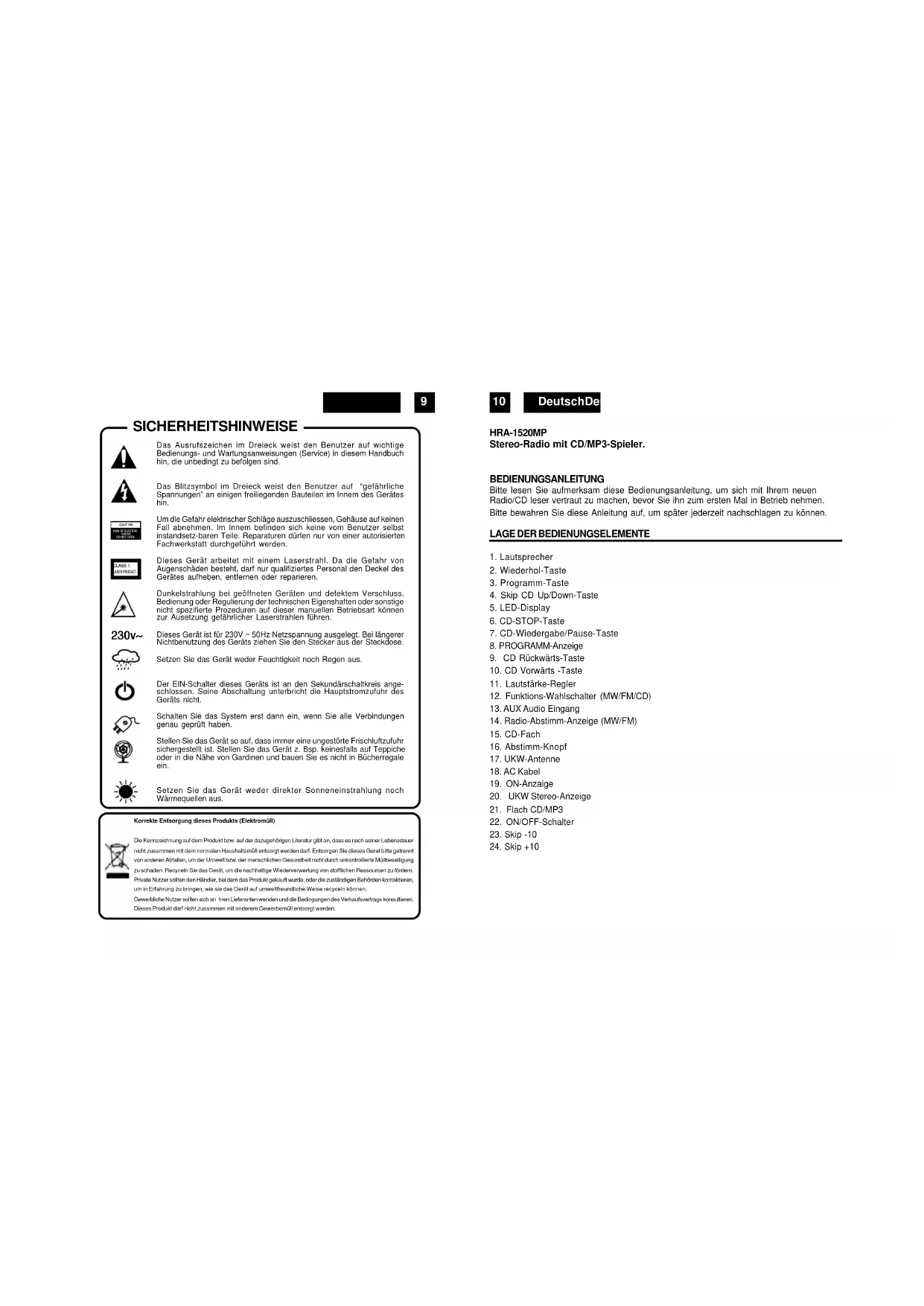 BEDIENUNGSANLEITUNG HRA1520MP ROADSTAR