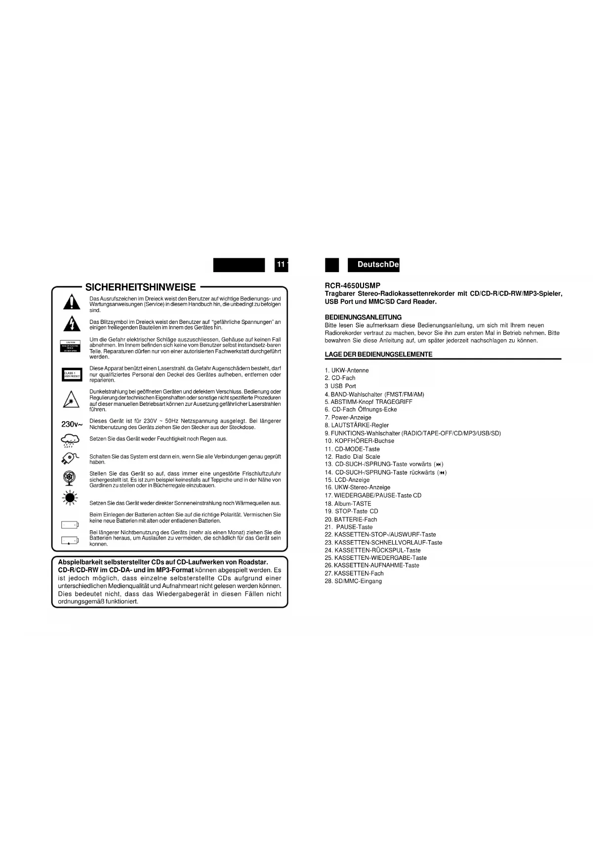 RCR4650USMPR - Cd-spieler/rekorder ROADSTAR - Kostenlose Bedienungsanleitung