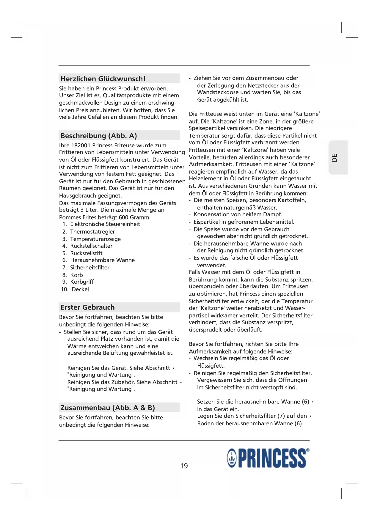 BEDIENUNGSANLEITUNG Superior Fryer PRINCESS