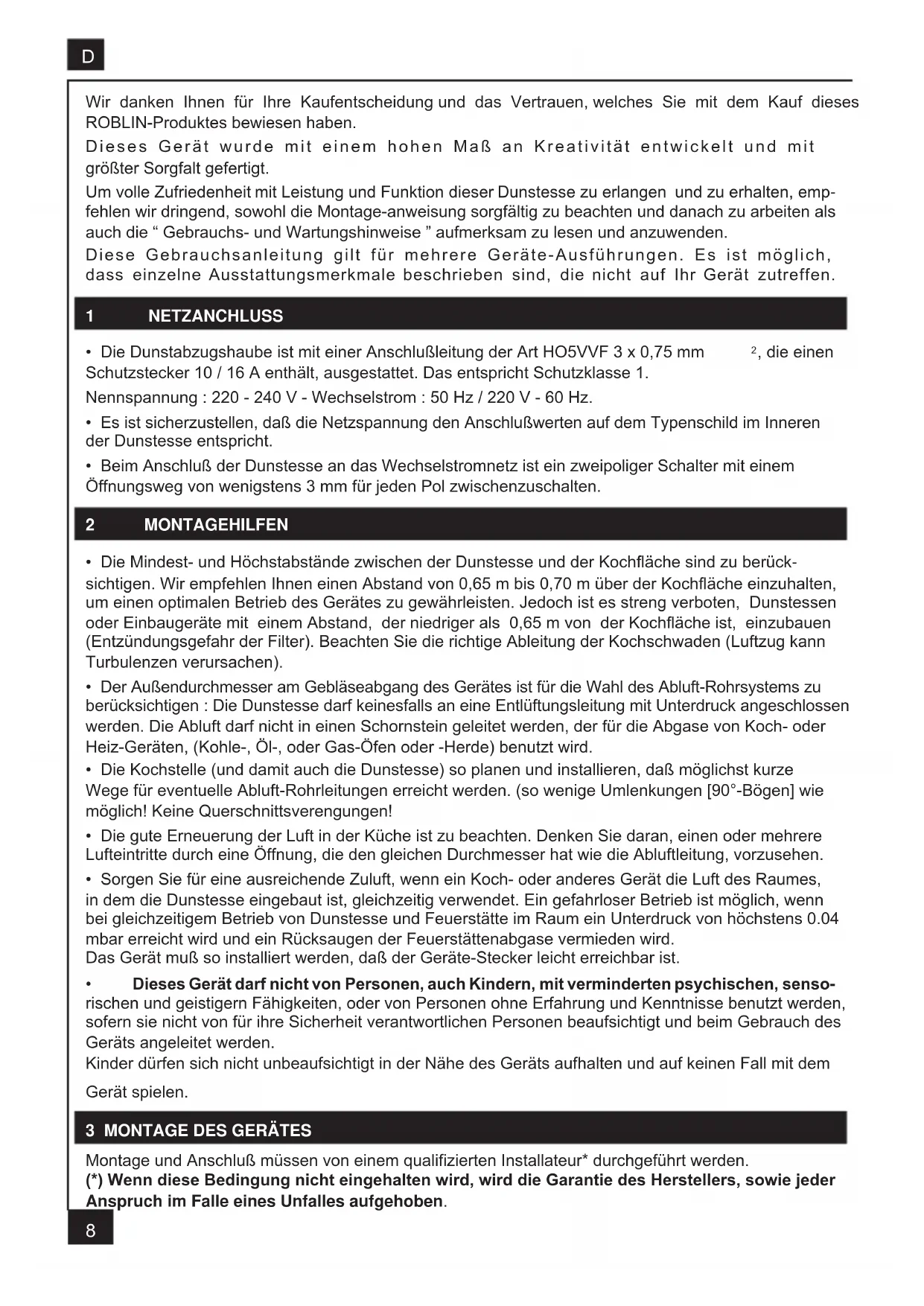 3 MONTAGE DES GERÄTES Montage und Anschluß müssen von einem qualizierten Installateur* durchgeführt werden.