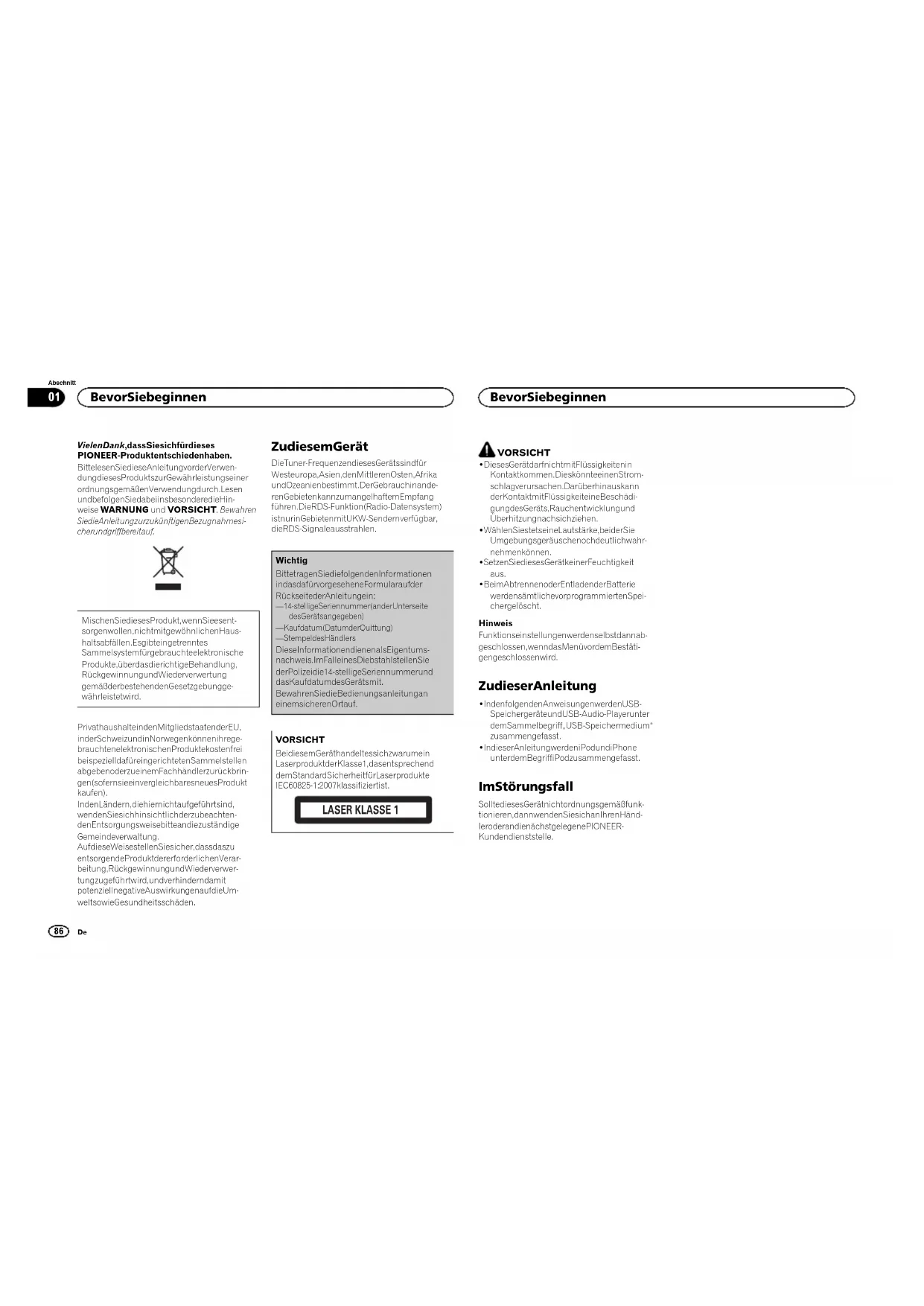 86 Abschnitt Bevor Sie beginnen