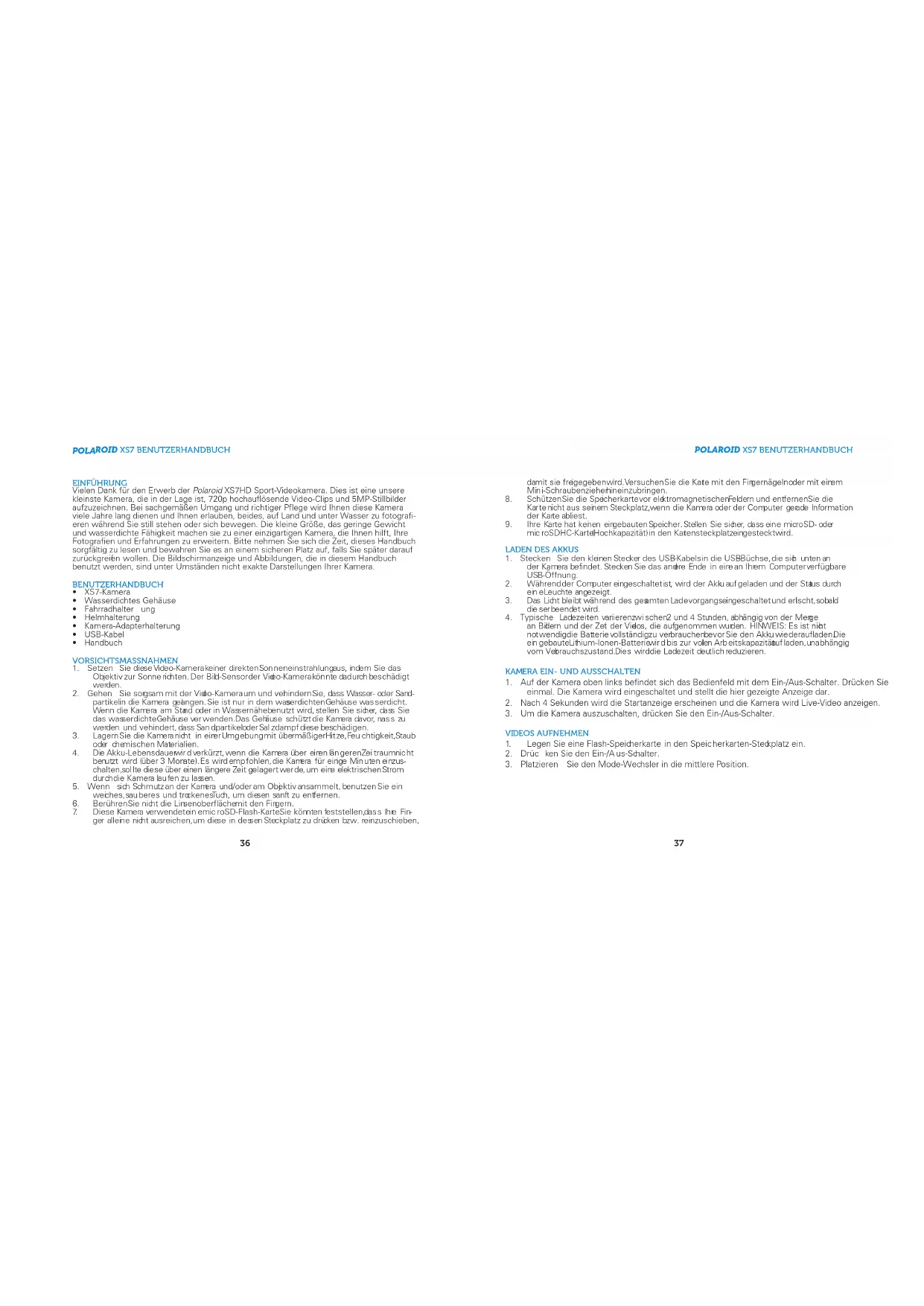 BEDIENUNGSANLEITUNG XS7 POLAROID