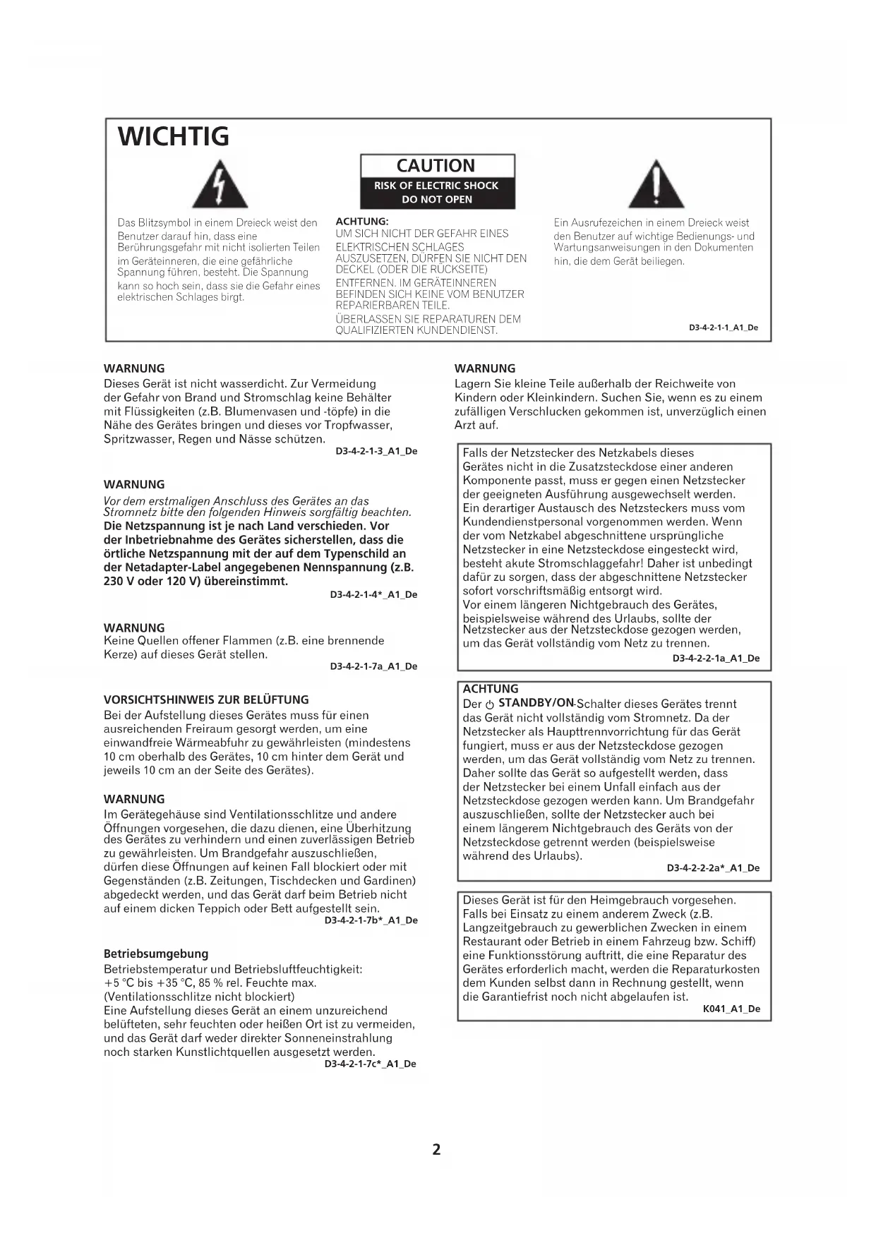 CAUTION RISK OF ELECTRIC SHOCK DO NOT OPEN WICHTIG D3-4-2-1-1_A1_De3