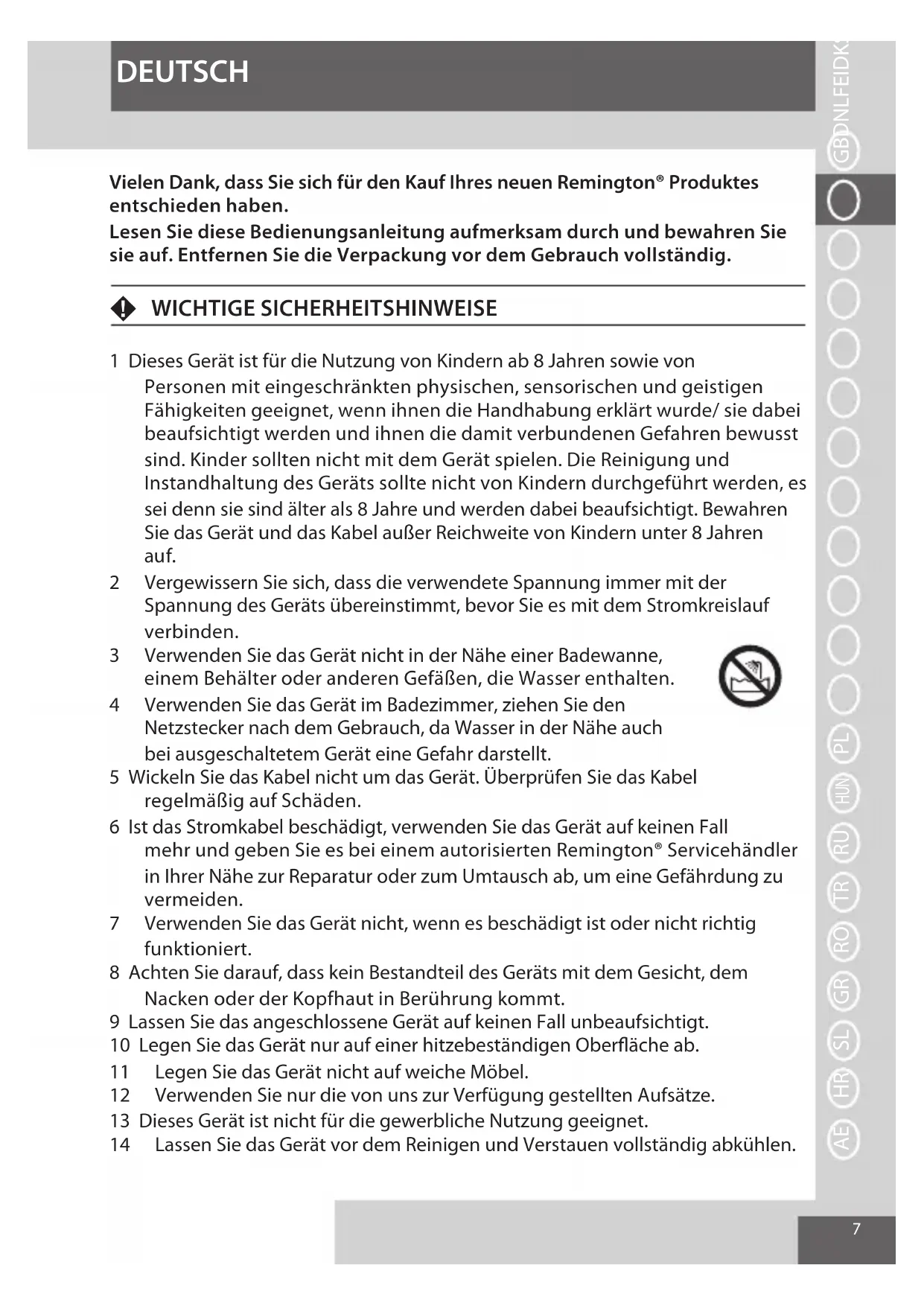 DEUTSCH Vielen Dank, dass Sie sich für den Kauf Ihres neuen Remington® Produktes