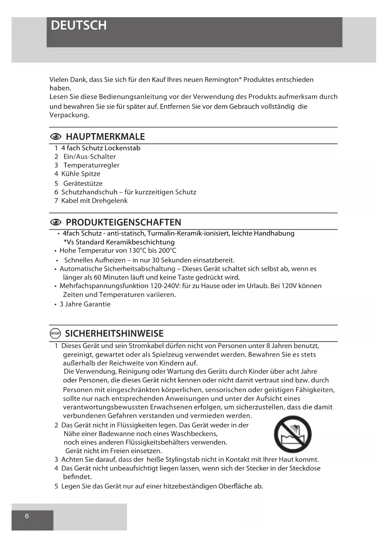 DEUTSCH Vielen Dank, dass Sie sich für den Kauf Ihres neuen Remington® Produktes entschieden