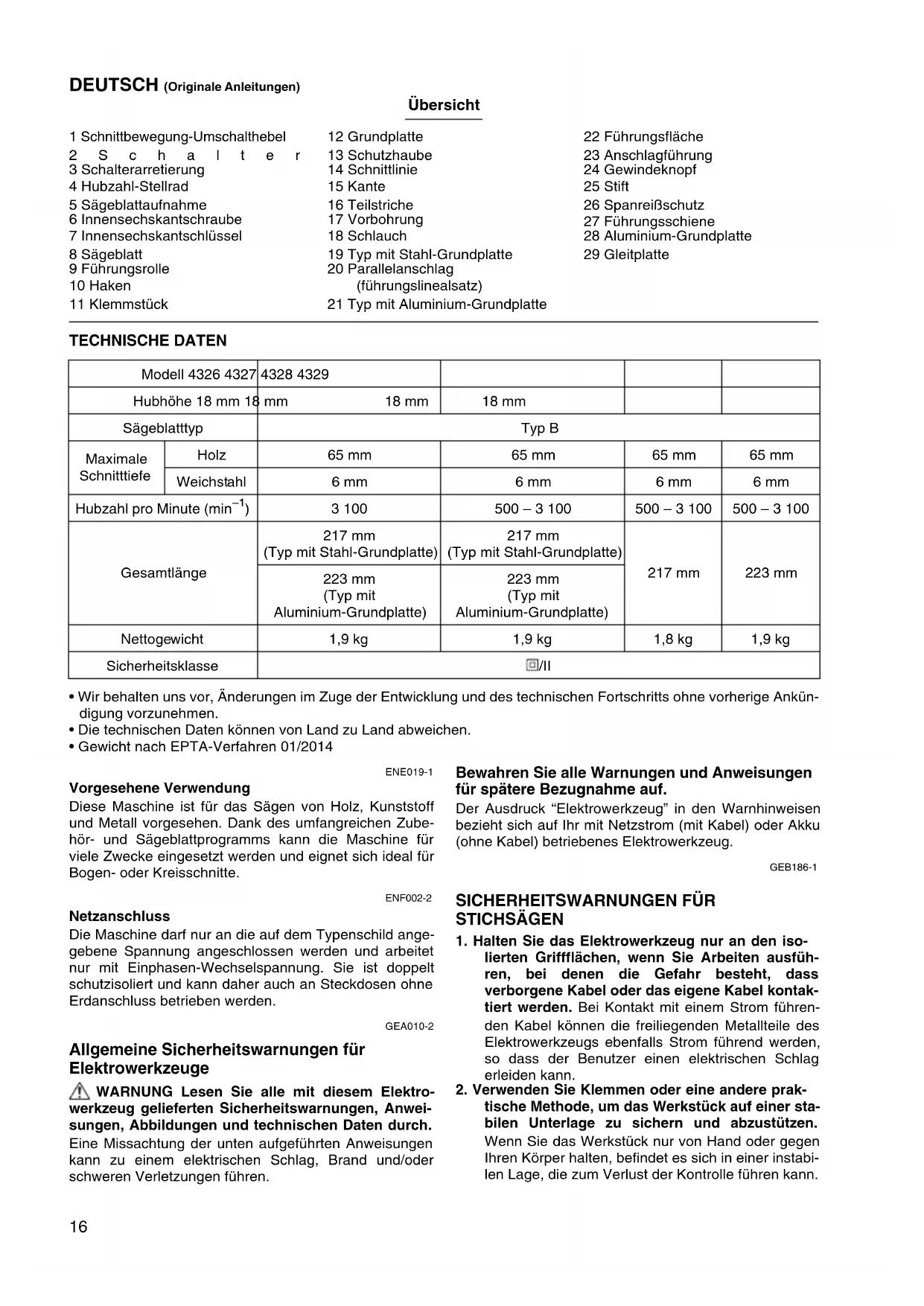 • Gewicht nach EPTA-Verfahren 01/2014 ENE019-1 Vorgesehene Verwendung