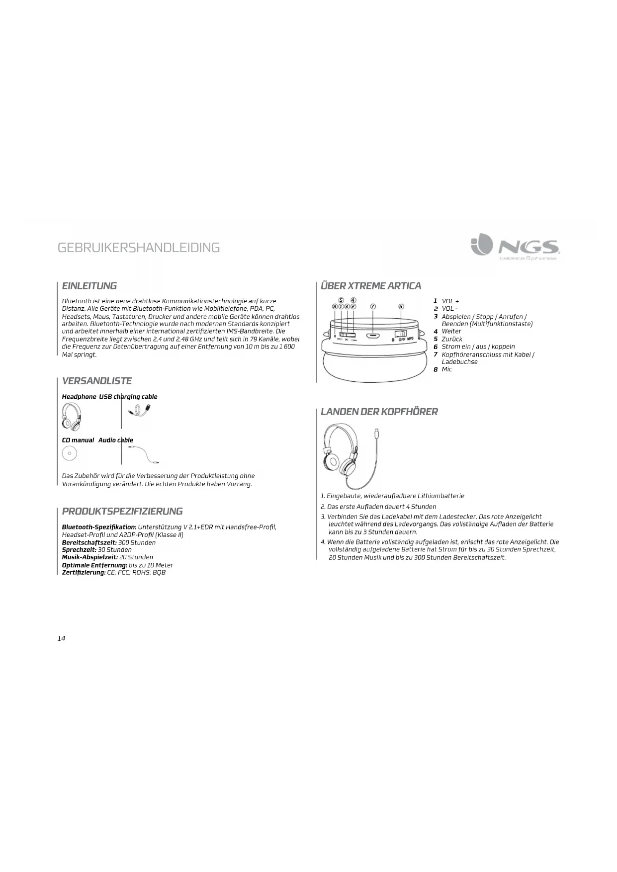 GARANTIE Begrenzte Garantie. NGS garantiert mit diesem Dokument die Abwesenheit von wichtigen Störungen in Bezug