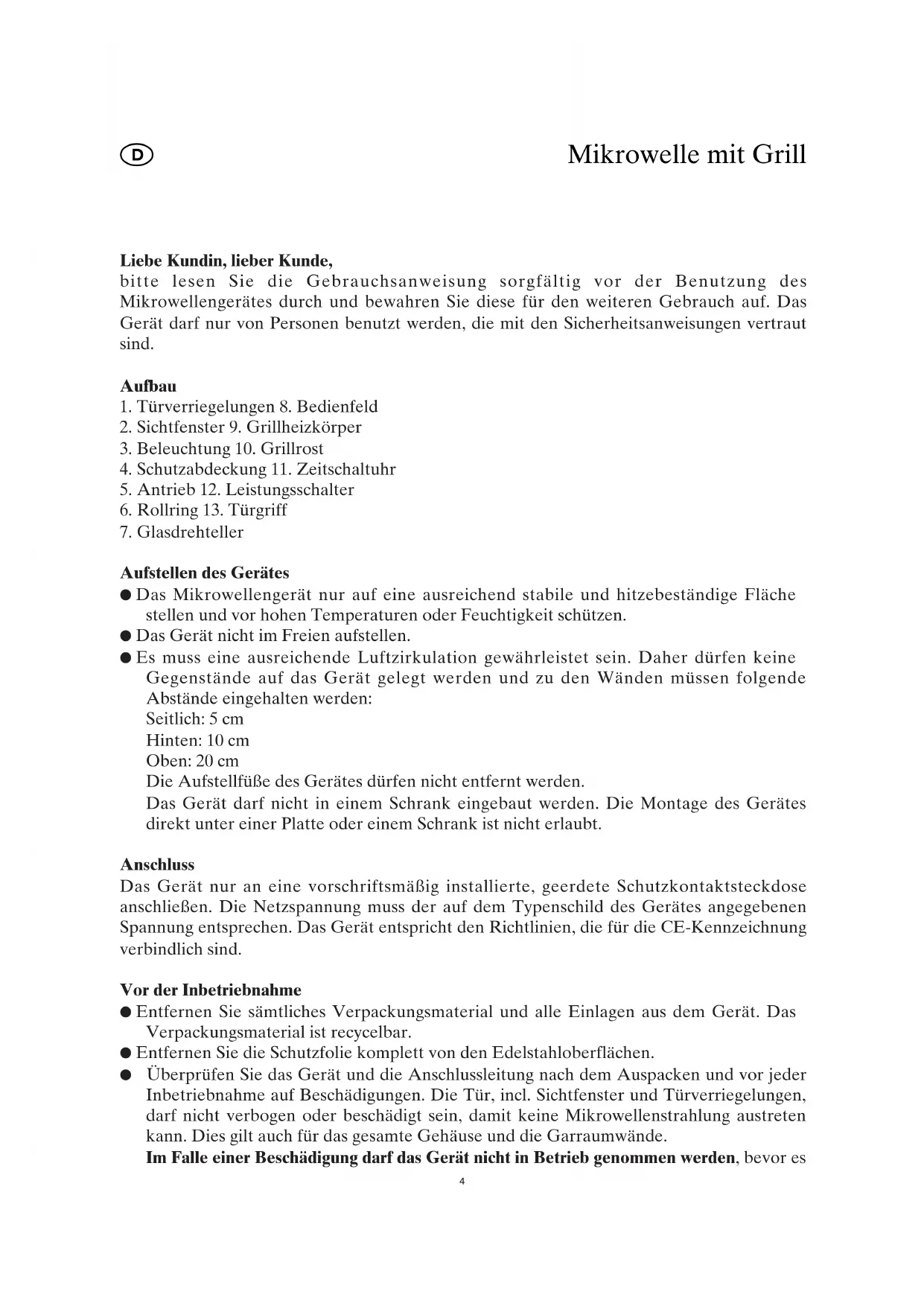 Mikrowellengerätes durch und bewahren Sie diese für den weiteren Gebrauch auf. Das