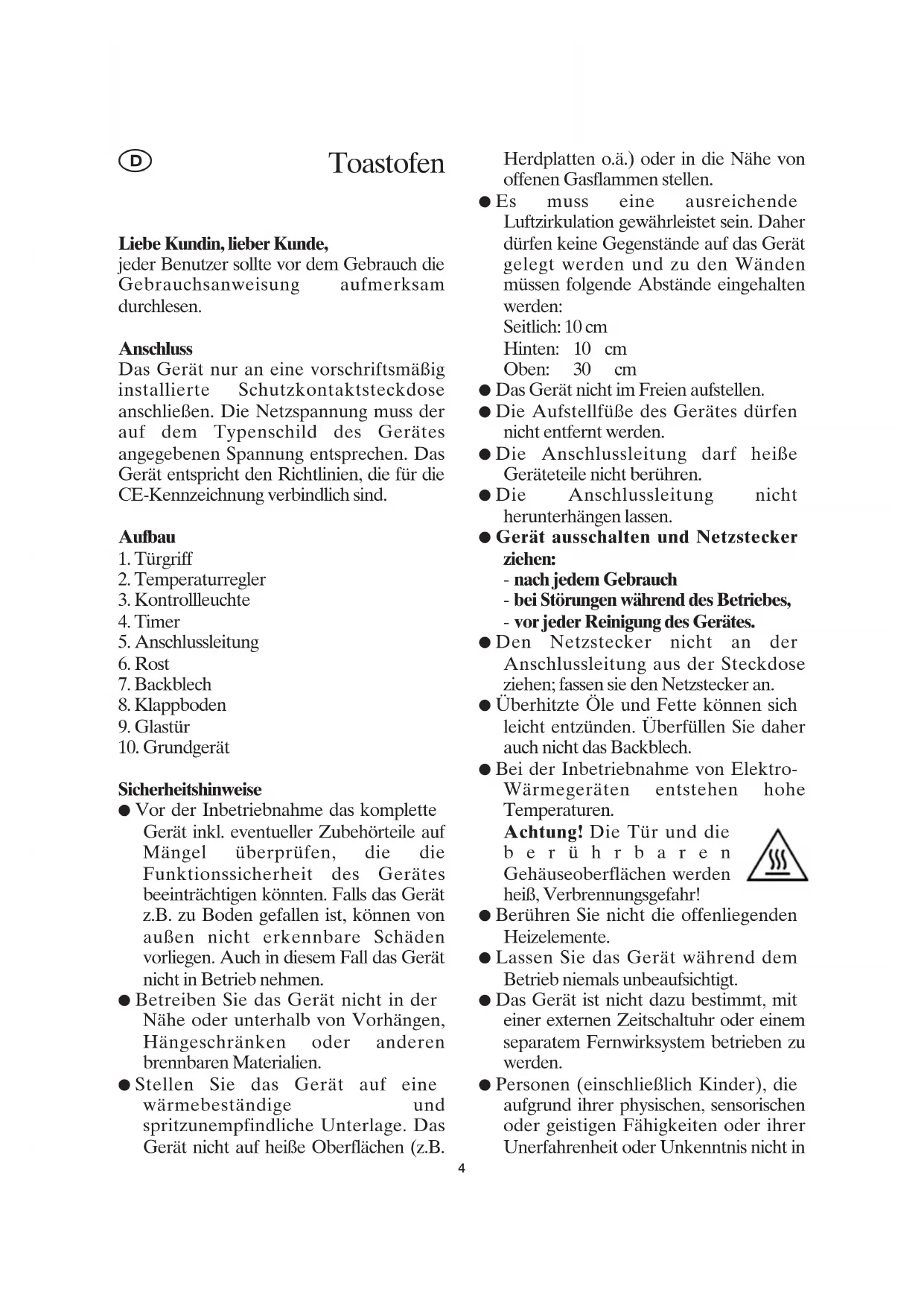 Betrieb niemals unbeaufsichtigt.