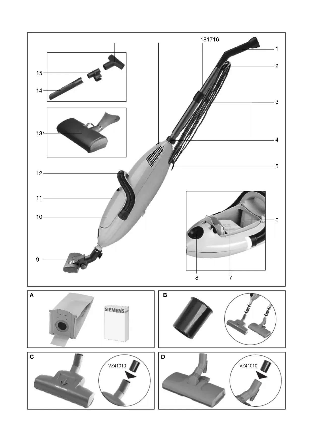 VR4E1522 - Staubsauger SIEMENS - Kostenlose Bedienungsanleitung