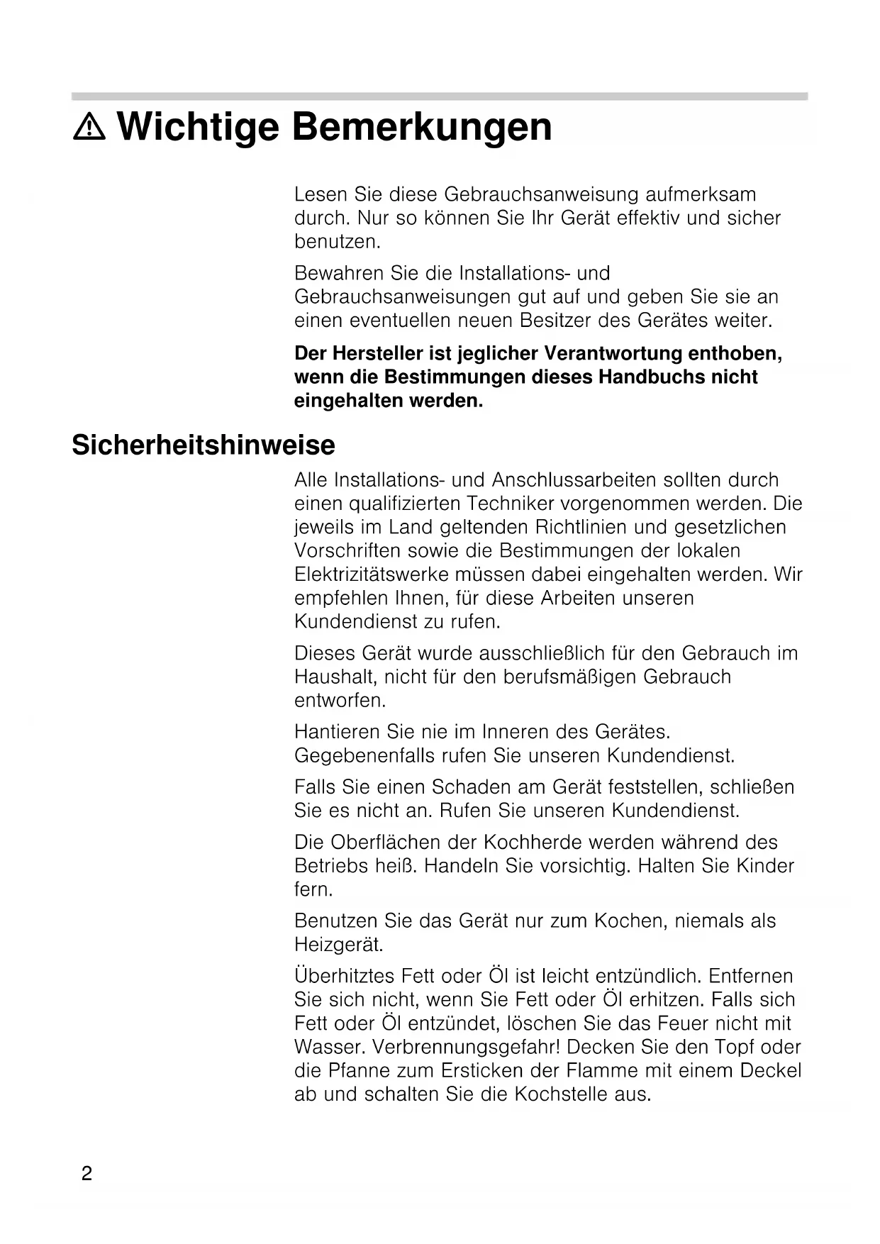 Vorsicht! Benutzen Sie die Kochstellen nicht ohne