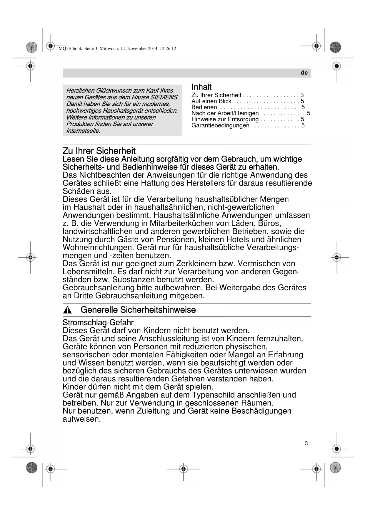 Finden Sie kostenlos die Bedienungsanleitung des Geräts MQ5B150 SIEMENS als PDF.