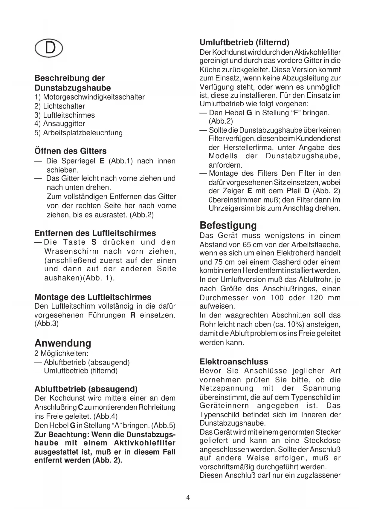 Montagevorschrift und Gebrauchsanleitung für die Dunstabzughaube