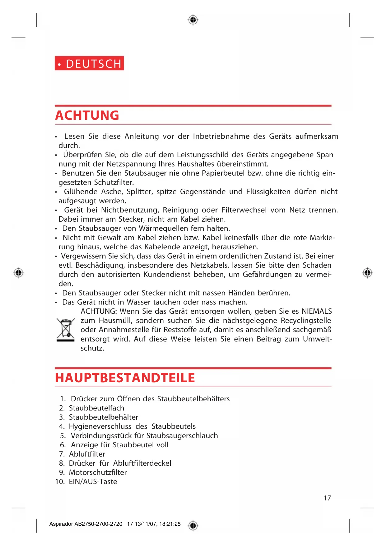 STAUBSAUGER GEBRAUCHSANLEITUNG
