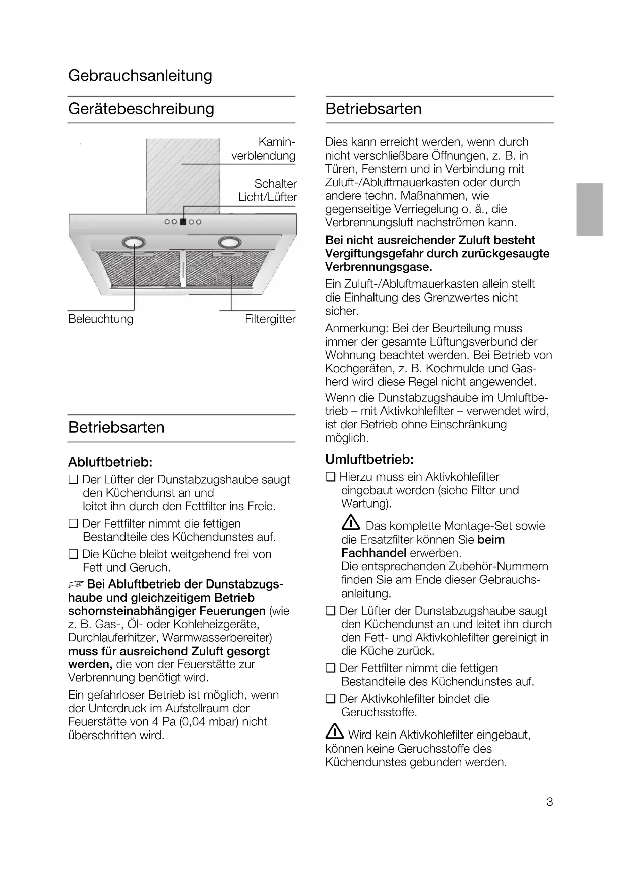 trieb – mit Aktivkohlefilter – verwendet wird,