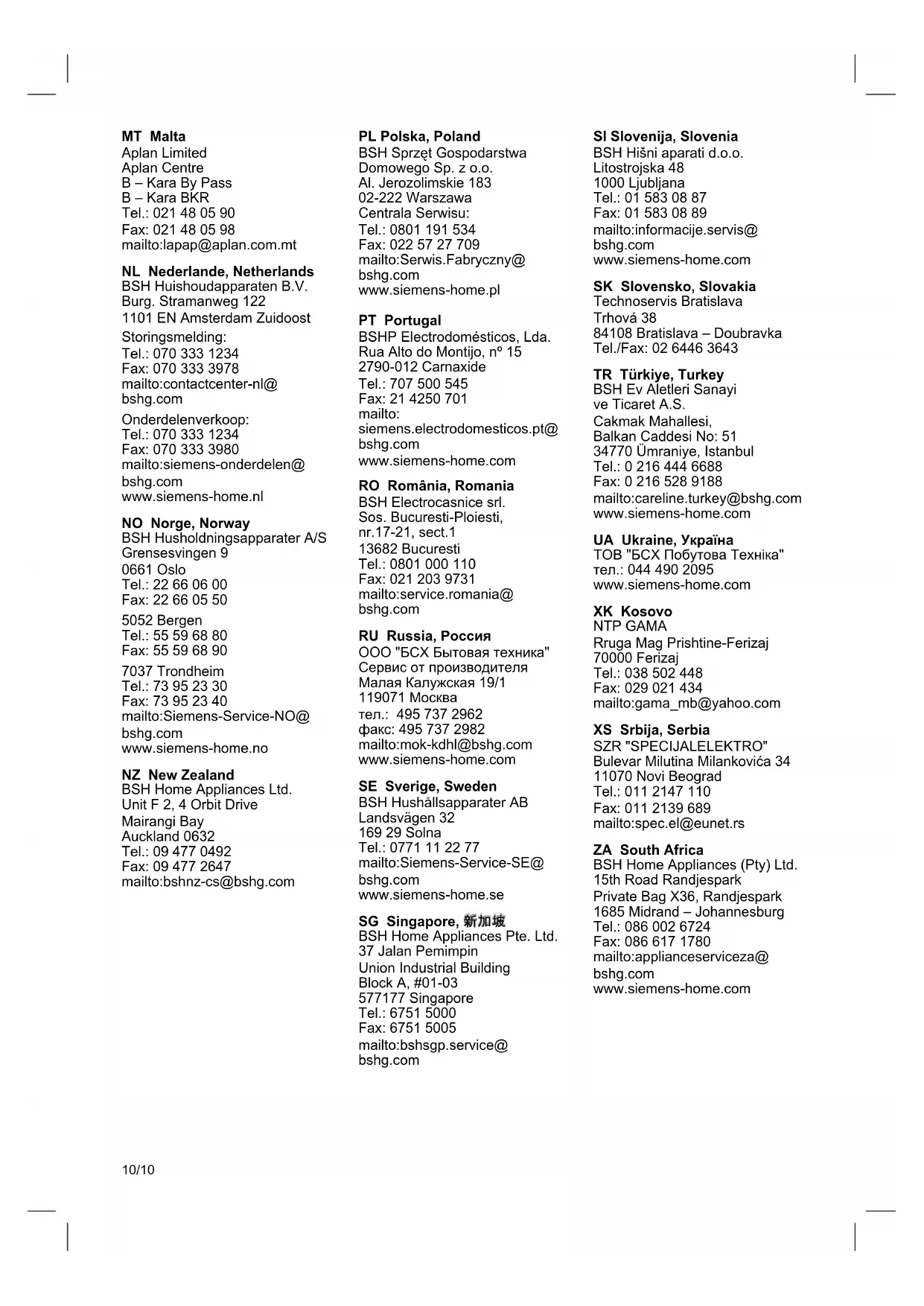 siemens-info-line@bshg.com *) 0,14 €/Min. aus dem Festnetz, Mobilfunk max. 0,42 €/Min. Nur für Deutschland gültig!