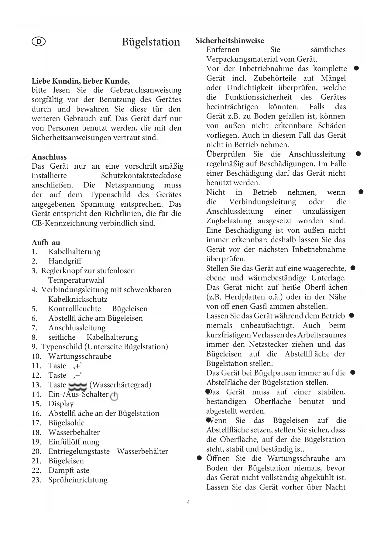 Vorsicht! z Während dem Bügeln kann die