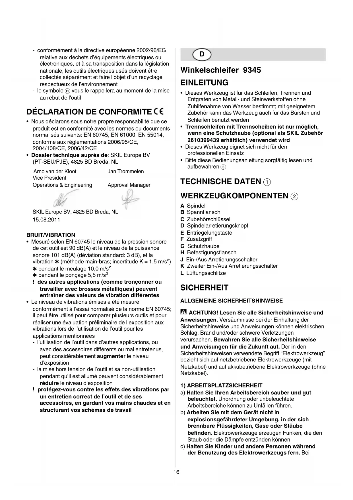 BEDIENUNGSANLEITUNG 9345 AA SKIL