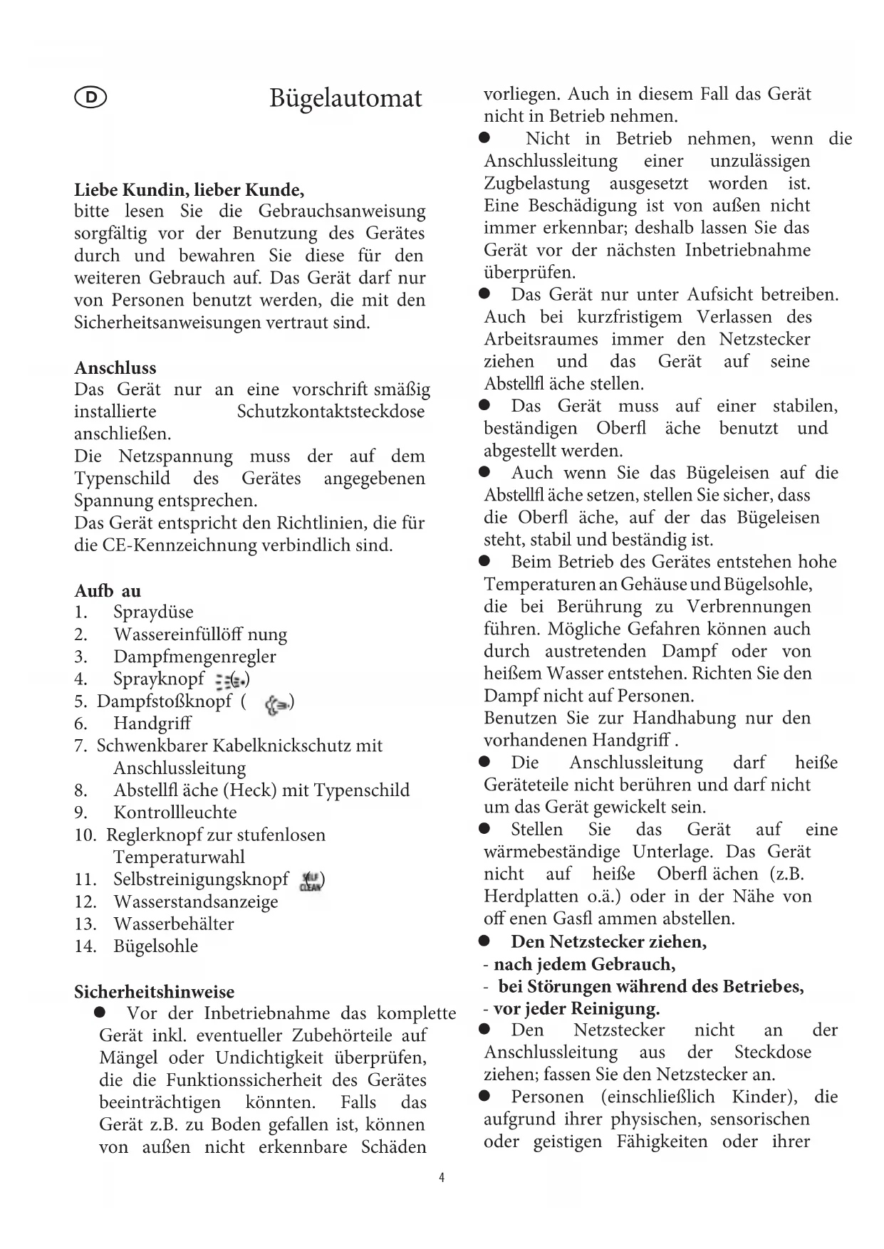 da sonst die Bügelsohle beschädigt werden