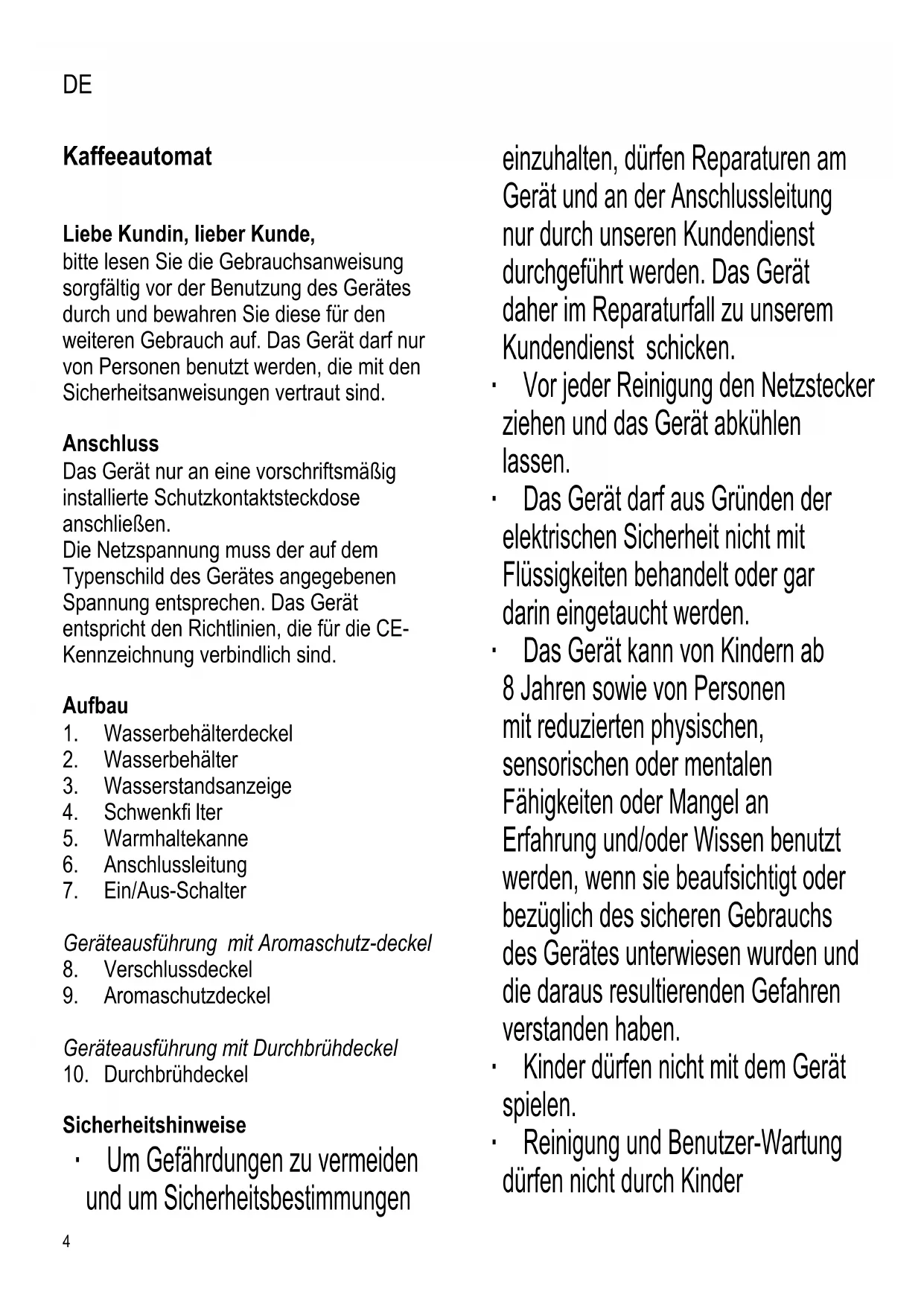 KA 9485 - Kaffeemaschine SEVERIN - Kostenlose Bedienungsanleitung