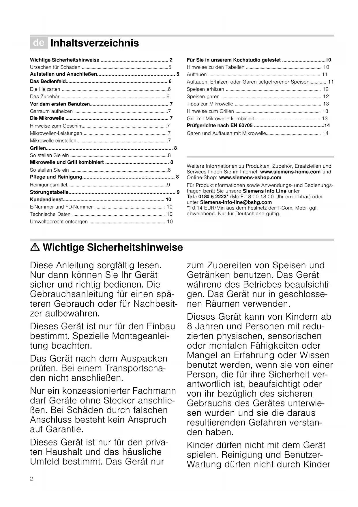 HF12G560 - Mikrowelle SIEMENS - Kostenlose Bedienungsanleitung